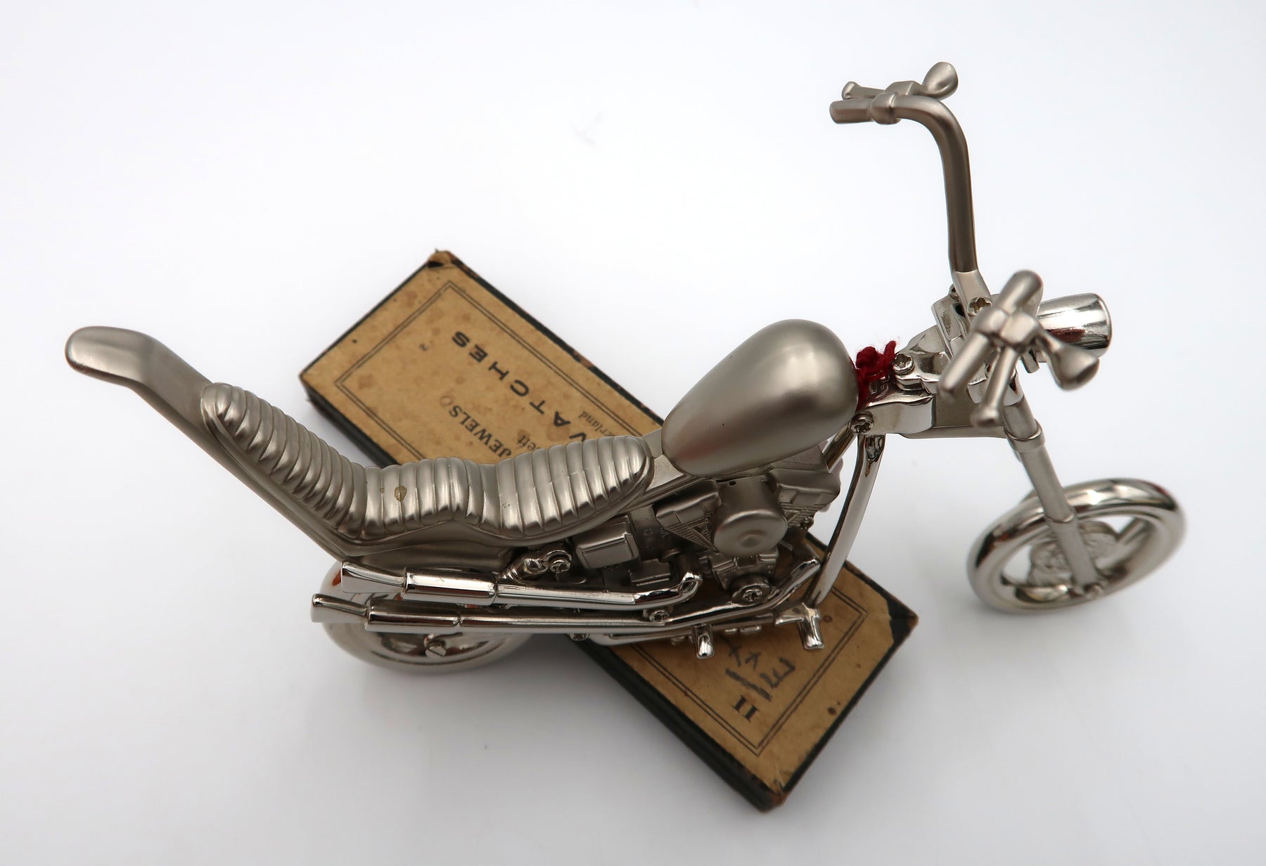For Sale: (1) Nice Silver Tone Motorcycle Miniature Quartz Clock No Stand