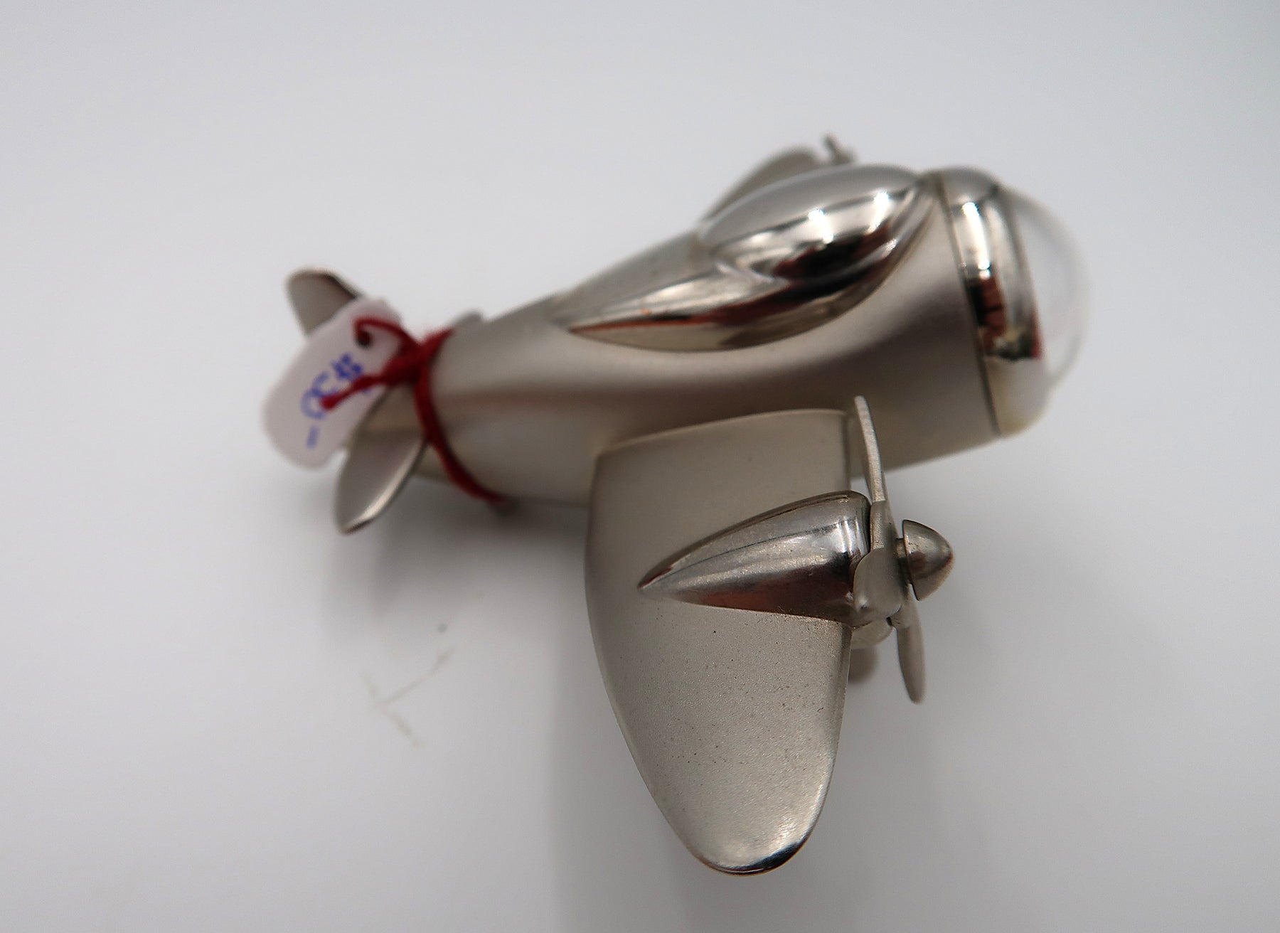 For Sale: (1) Nice Silver Tone Airplane Miniature Quartz Clock
