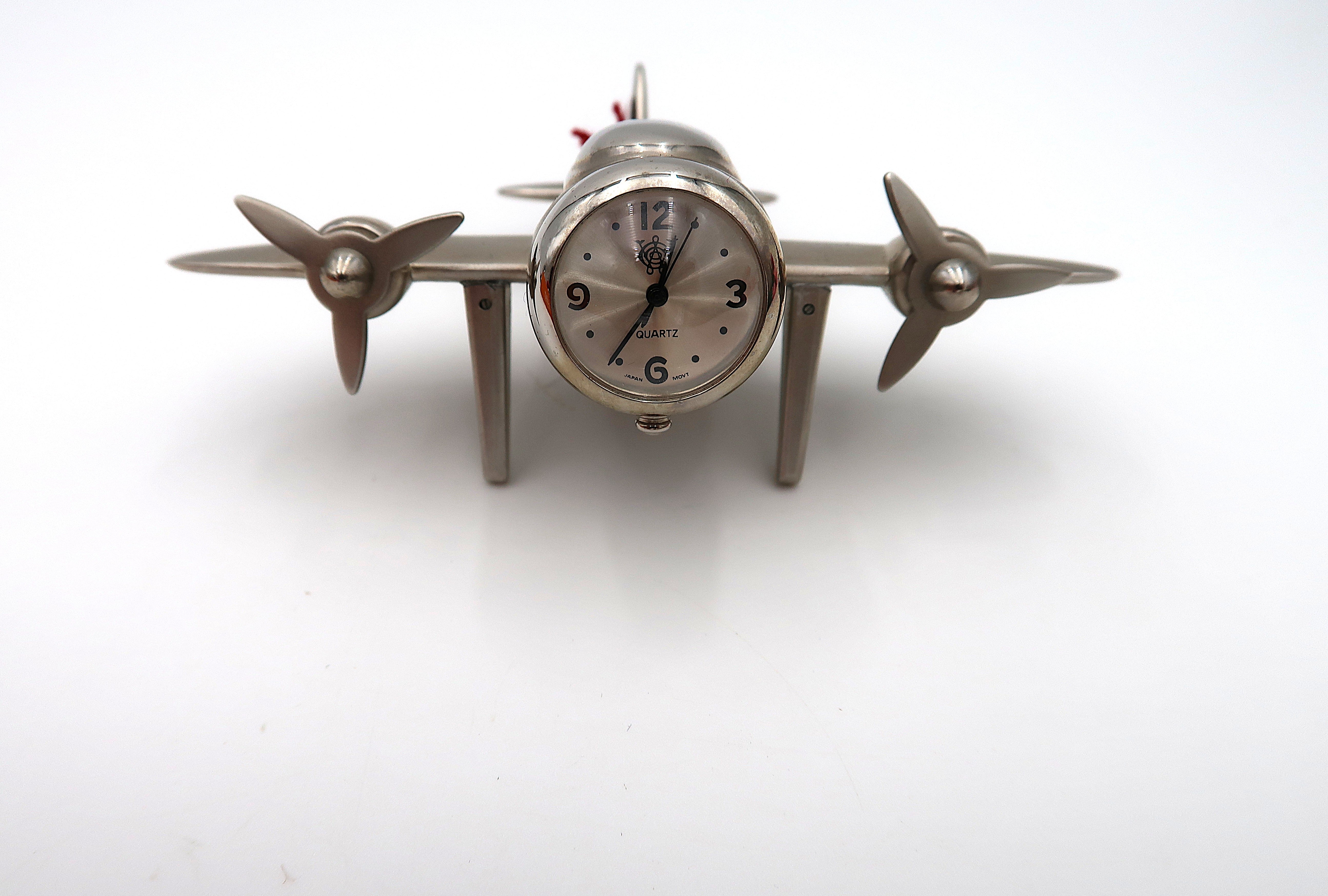 p491 Nice Silver Tone Airplane Miniature Quartz Clock