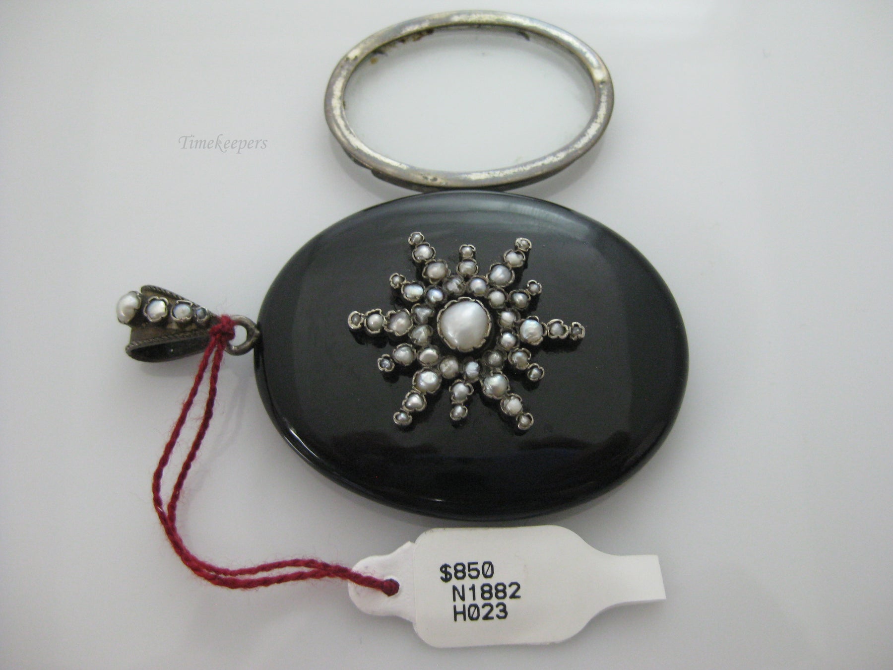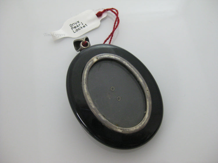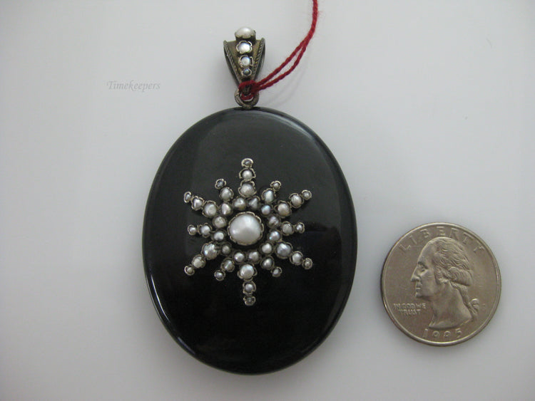 g278 Onyx and Pearl Locket with Pearls on the Bail