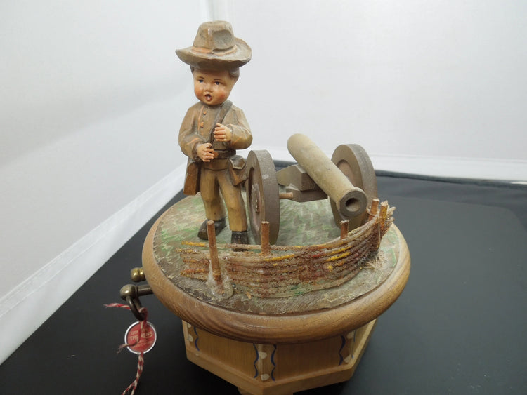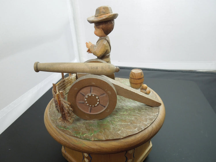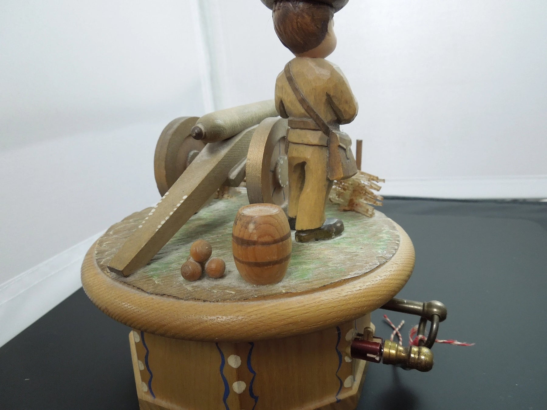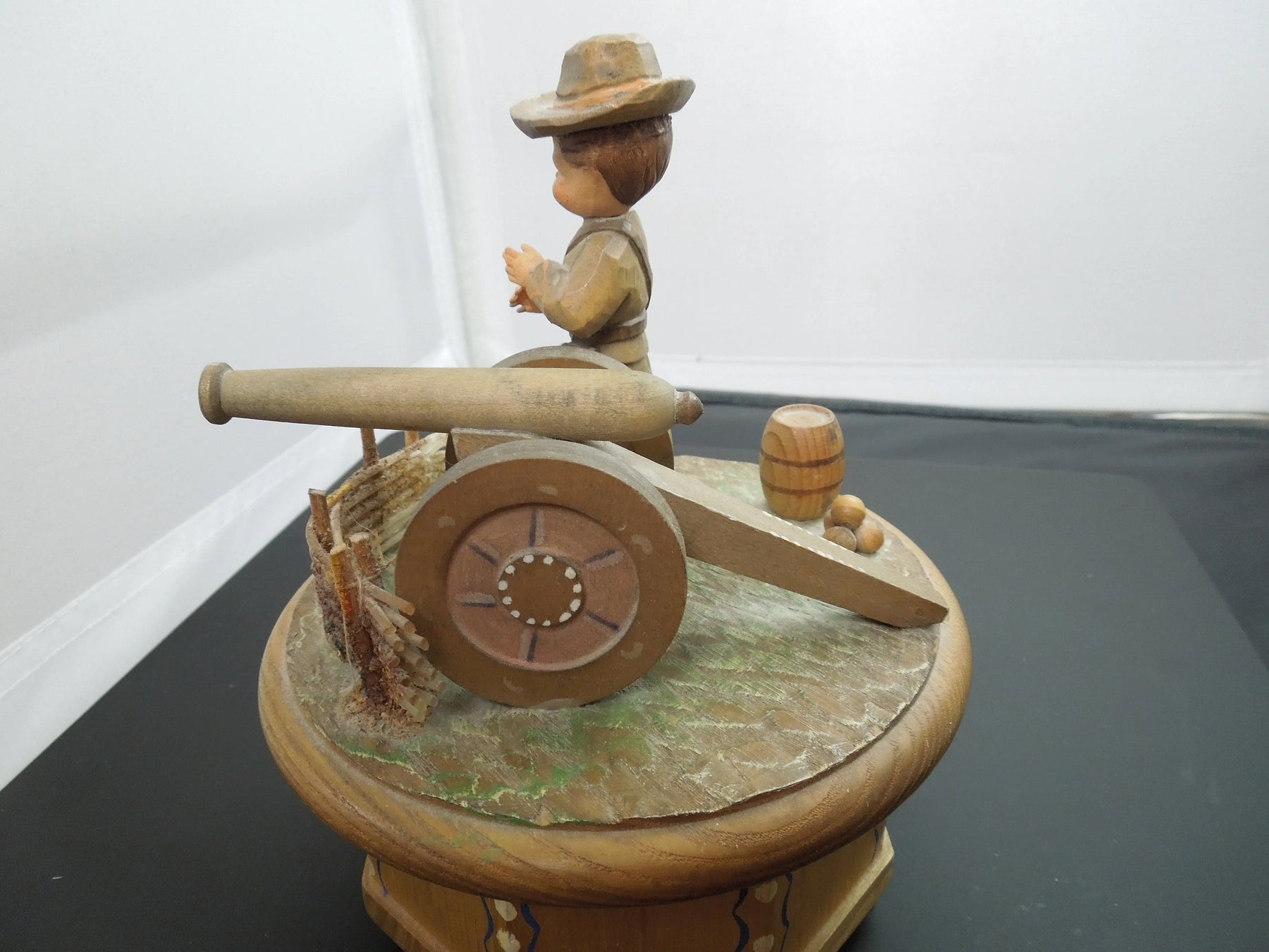 g386 retro Genuine Thorens Swiss Music Box with Boy and a Cannon