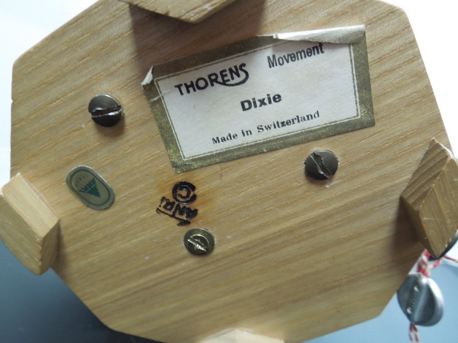 This is a genuine Thorens Swiss music box with a boy and a cannon on it. Has the original key. Plays the song Dixie
