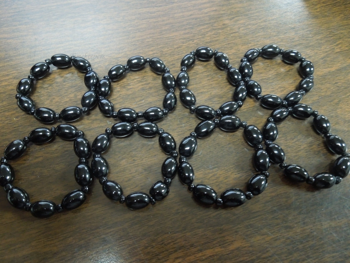 For Sale(1) : q349 Set 8 Napkin Ring Holders Tahitian Black Freshwater Pearls Wired Beads 2" Width