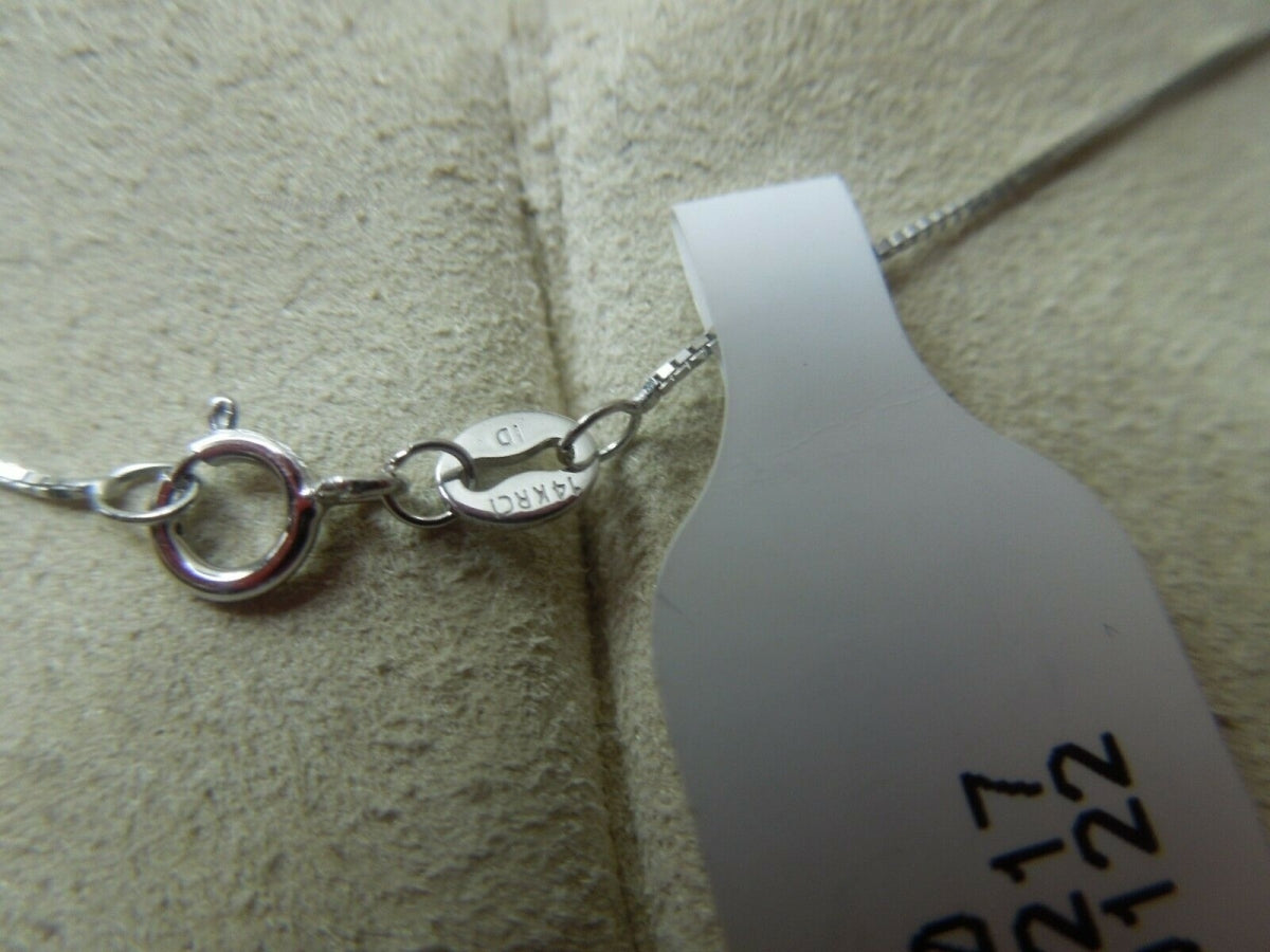 For sale: (1) q799 10k White Gold Box Chain 18" with Diamond Pendant .25 cts Necklace Signed