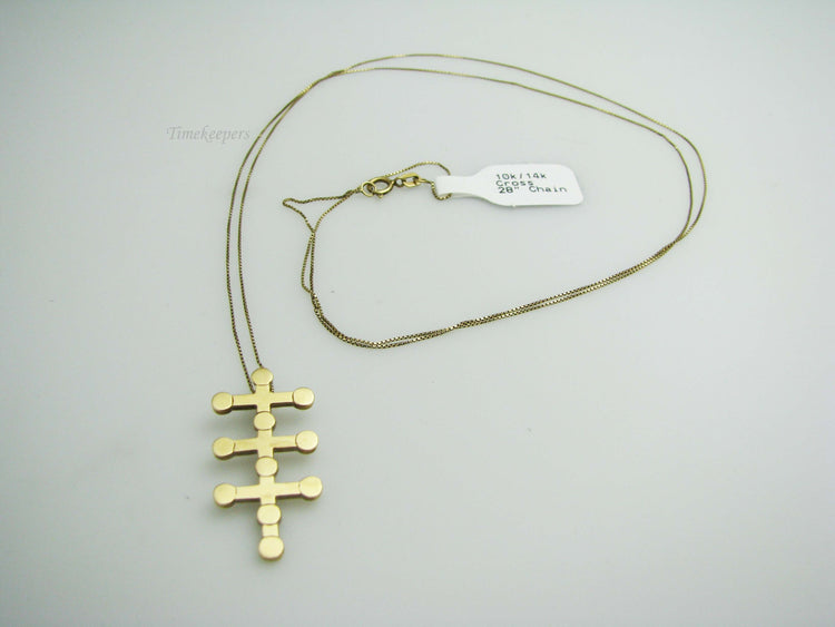 b402 Uniquely designed 14kt Yellow Gold Cross Pendant on a 10kt Yellow Gold chain
