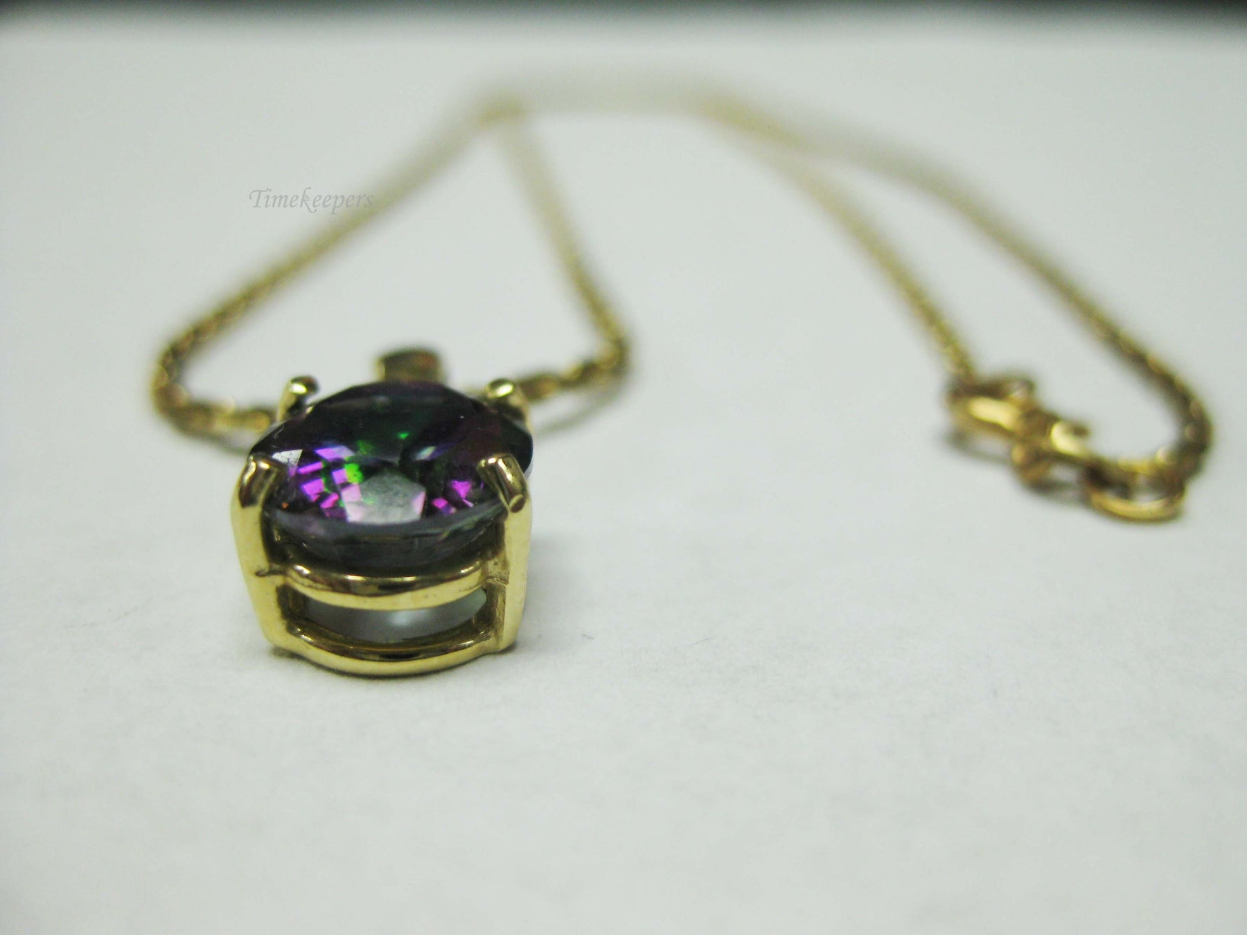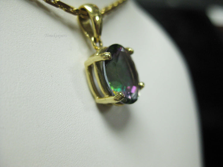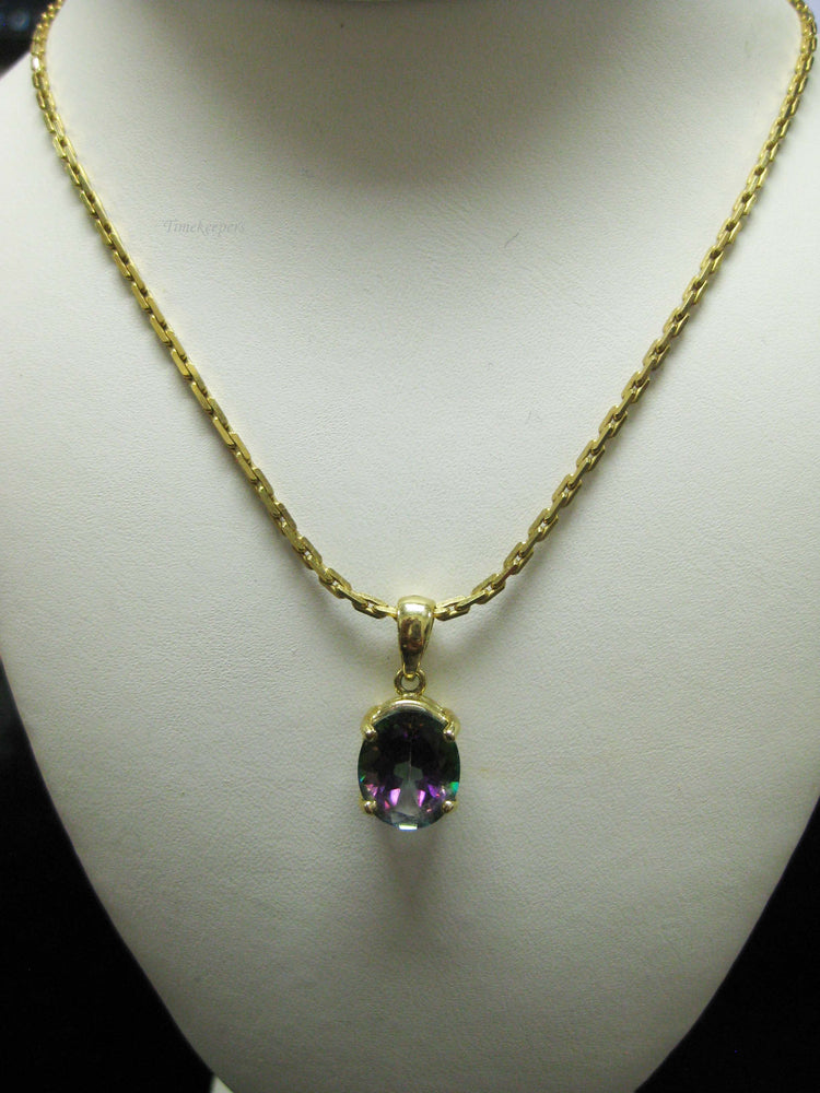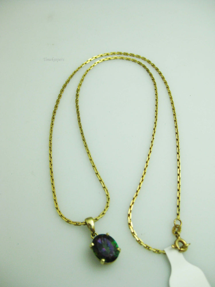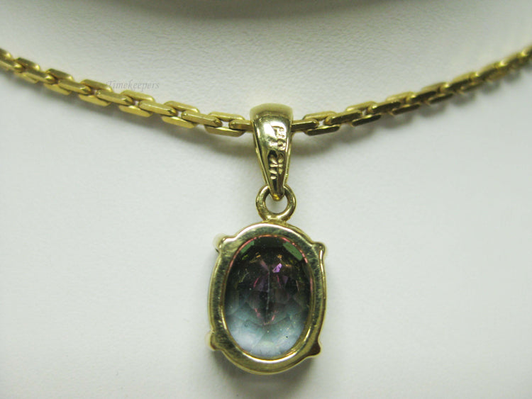 For Sale: (1) b694 Beautiful 14kt Yellow Gold Cable Link Necklace with 14kt Mystic Topaz Pendant PLEASE READ ENTIRE DESCRIPTION BEFORE PURCHASING Such a beautiful mystic topaz set in 14kt yellow gold. A great alternative to an Alexandrite! Would make a great June birthday, Christmas or Valentine's Day gift. Please see pictures for more details! Specifics: