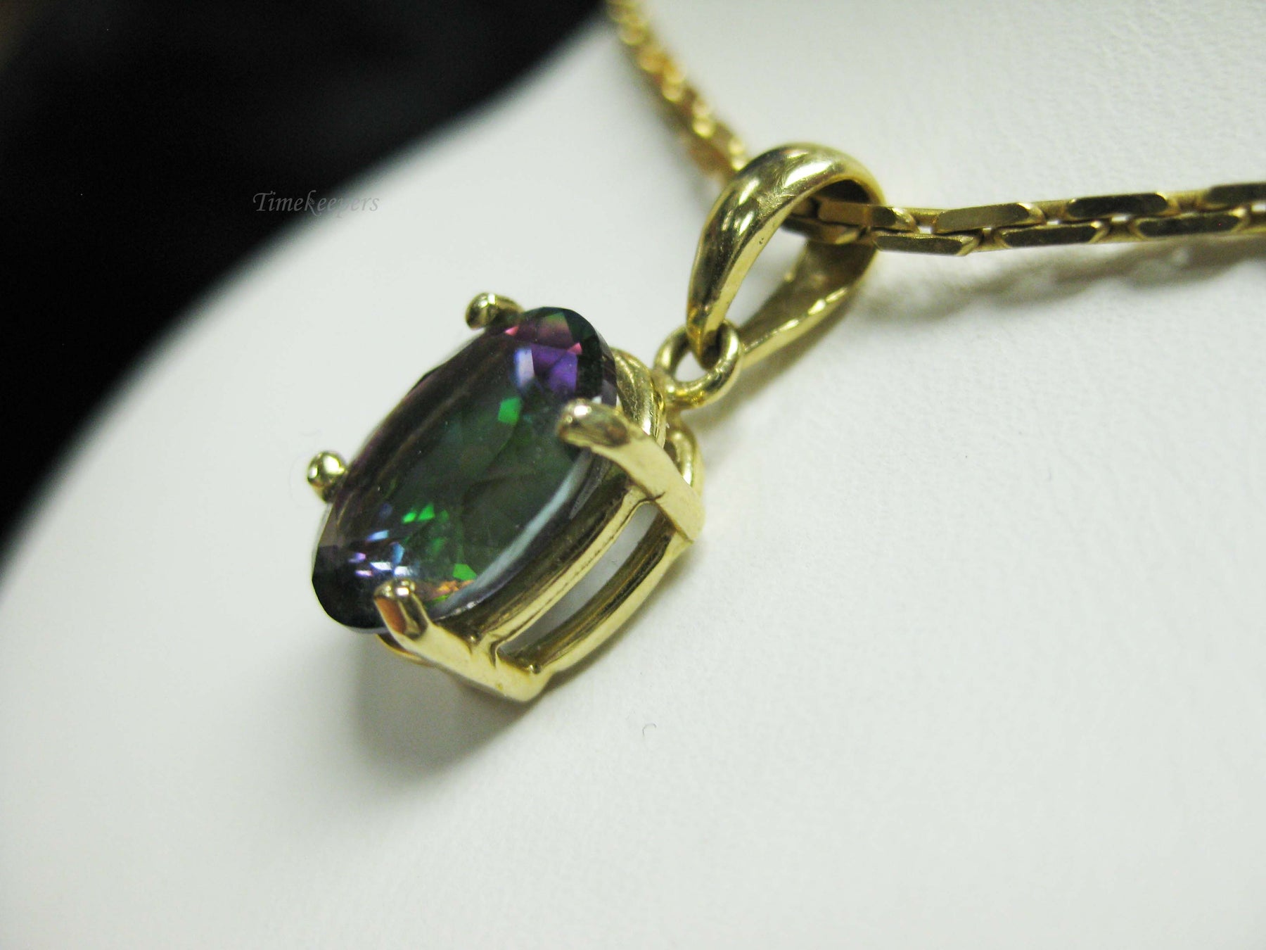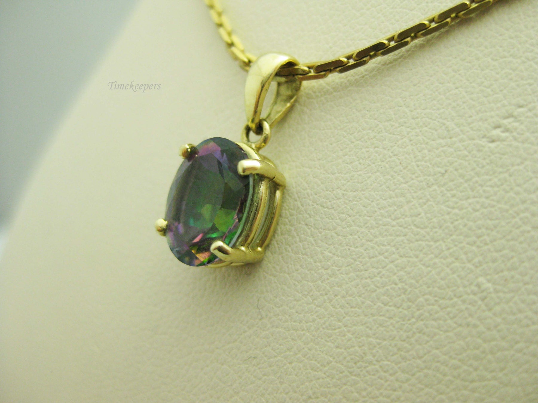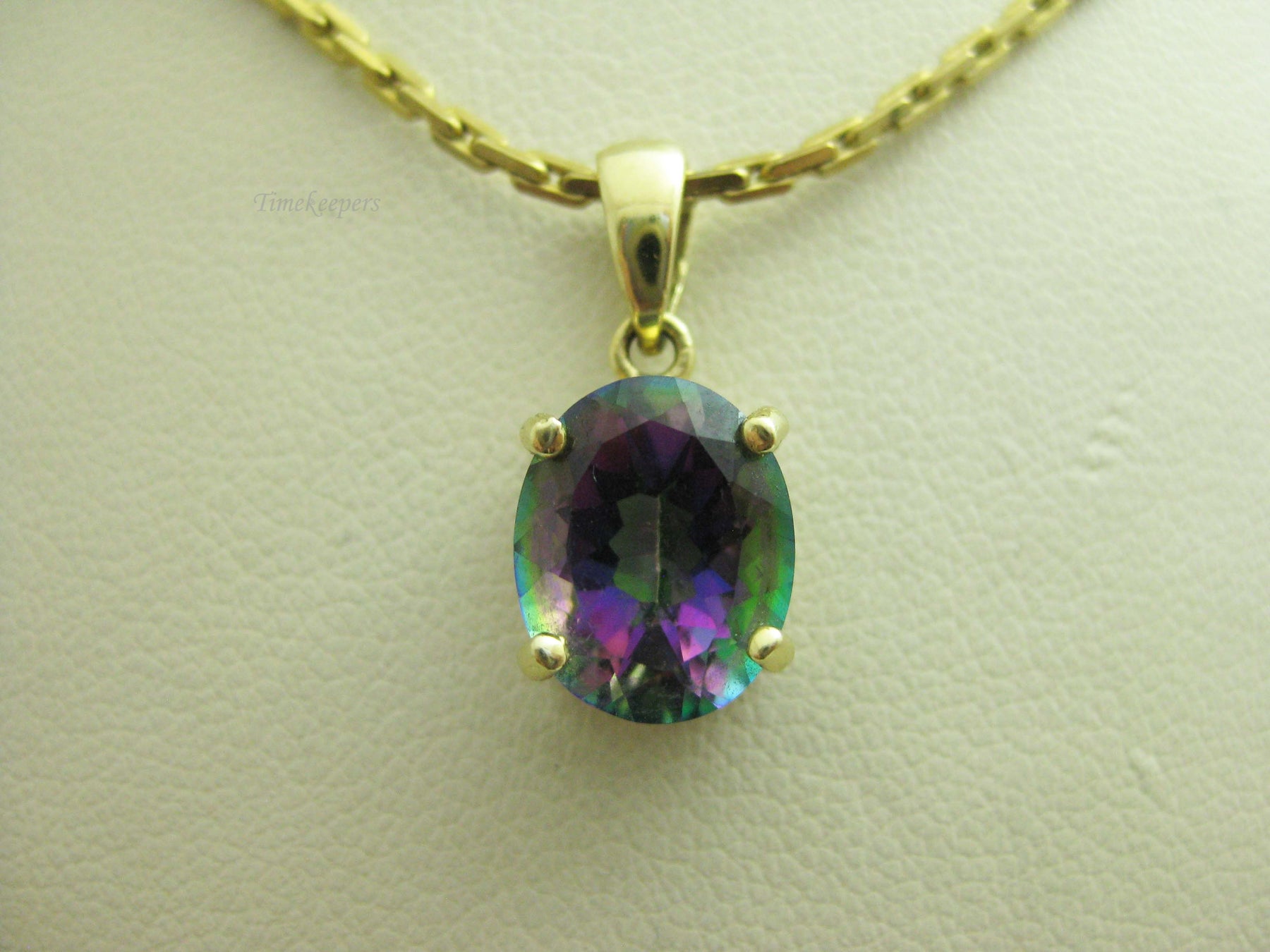 For Sale: (1) b694 Beautiful 14kt Yellow Gold Cable Link Necklace with 14kt Mystic Topaz Pendant PLEASE READ ENTIRE DESCRIPTION BEFORE PURCHASING Such a beautiful mystic topaz set in 14kt yellow gold. A great alternative to an Alexandrite! Would make a great June birthday, Christmas or Valentine's Day gift. Please see pictures for more details! Specifics: