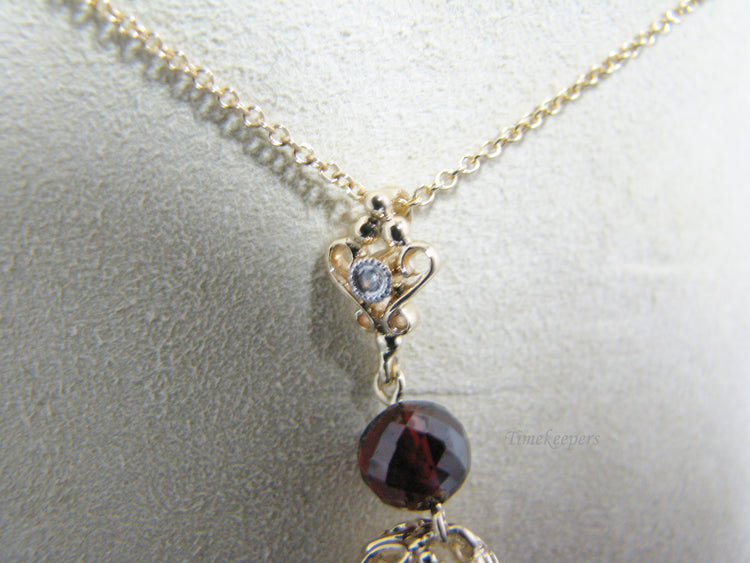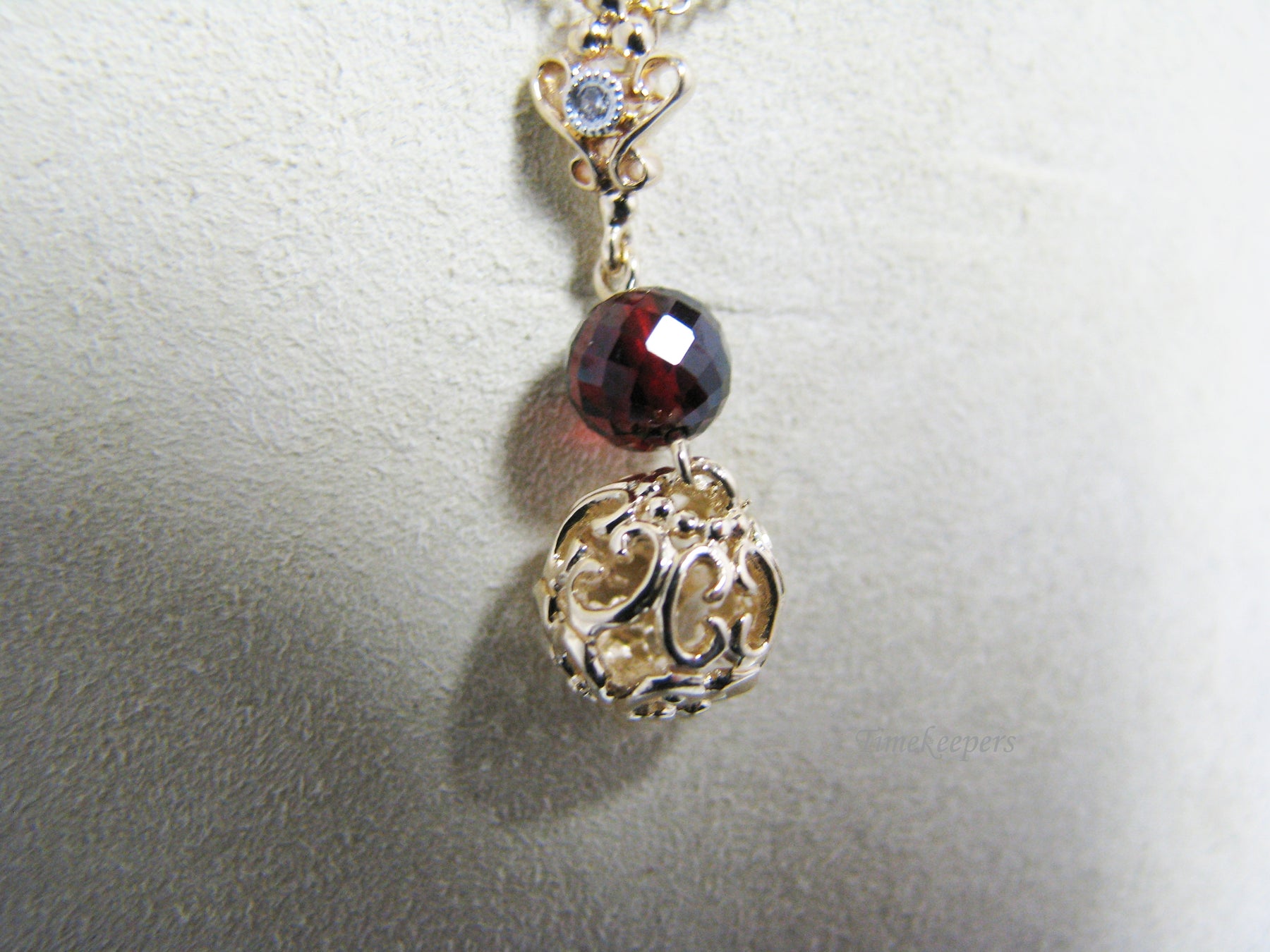 c926 Unique Garnet And Gold Ball Pendant on 17" Fancy Chain all in 14k Gold