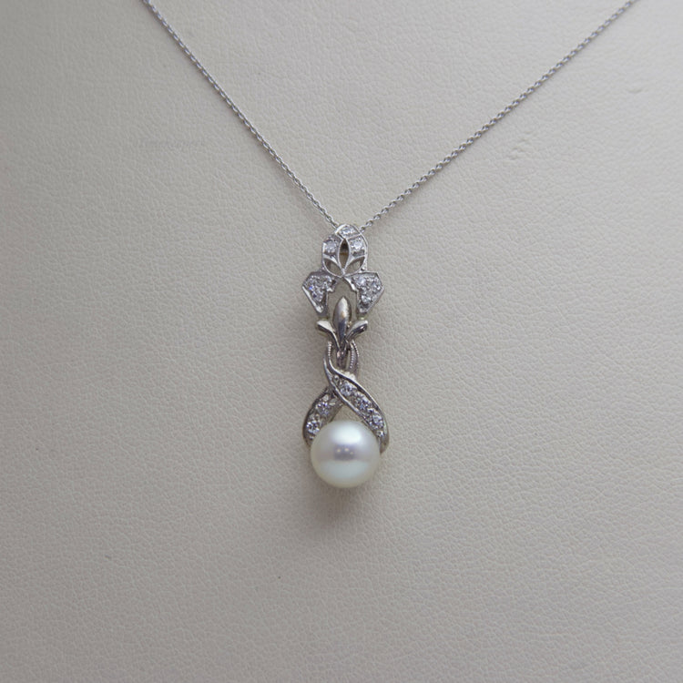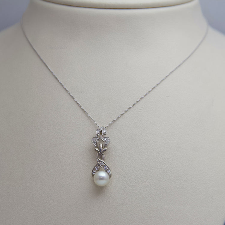 This necklace is very elegant. It contains one pearl and fourteen (14) diamonds in its pendant.