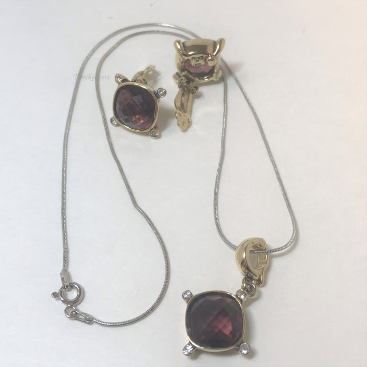 • Necklace Measures approx. 18" long. 1mm thick. Each Earring and pendant come with one large dark rose stones 12mm x 12mm and four white round stones 1mm in diameter.