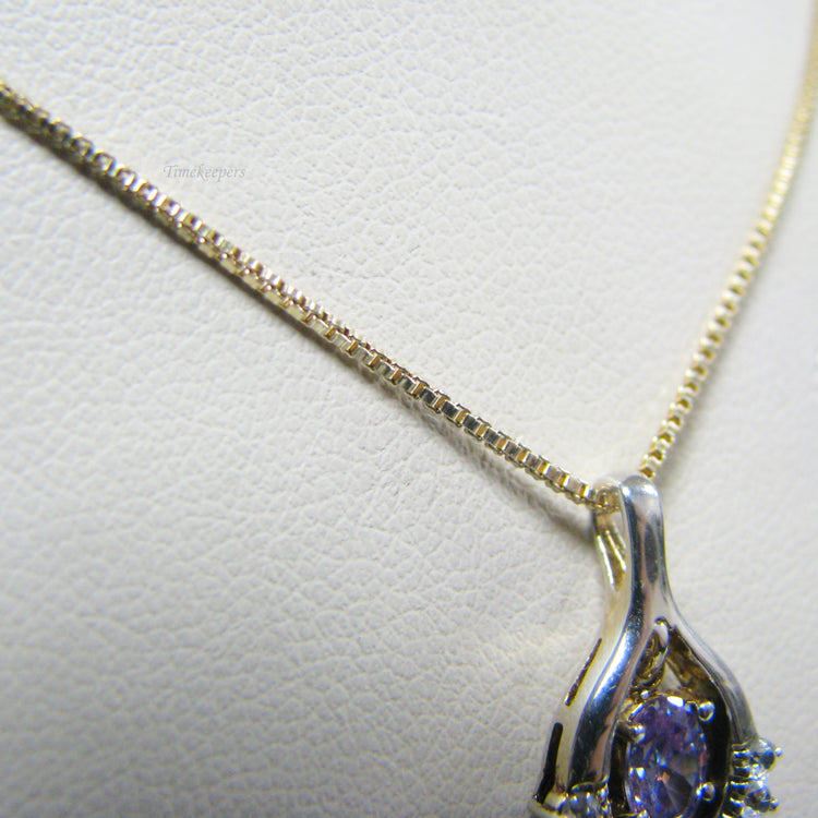 g022 Gold Plated Silver .925 18" Purple Stone Pendant Necklace