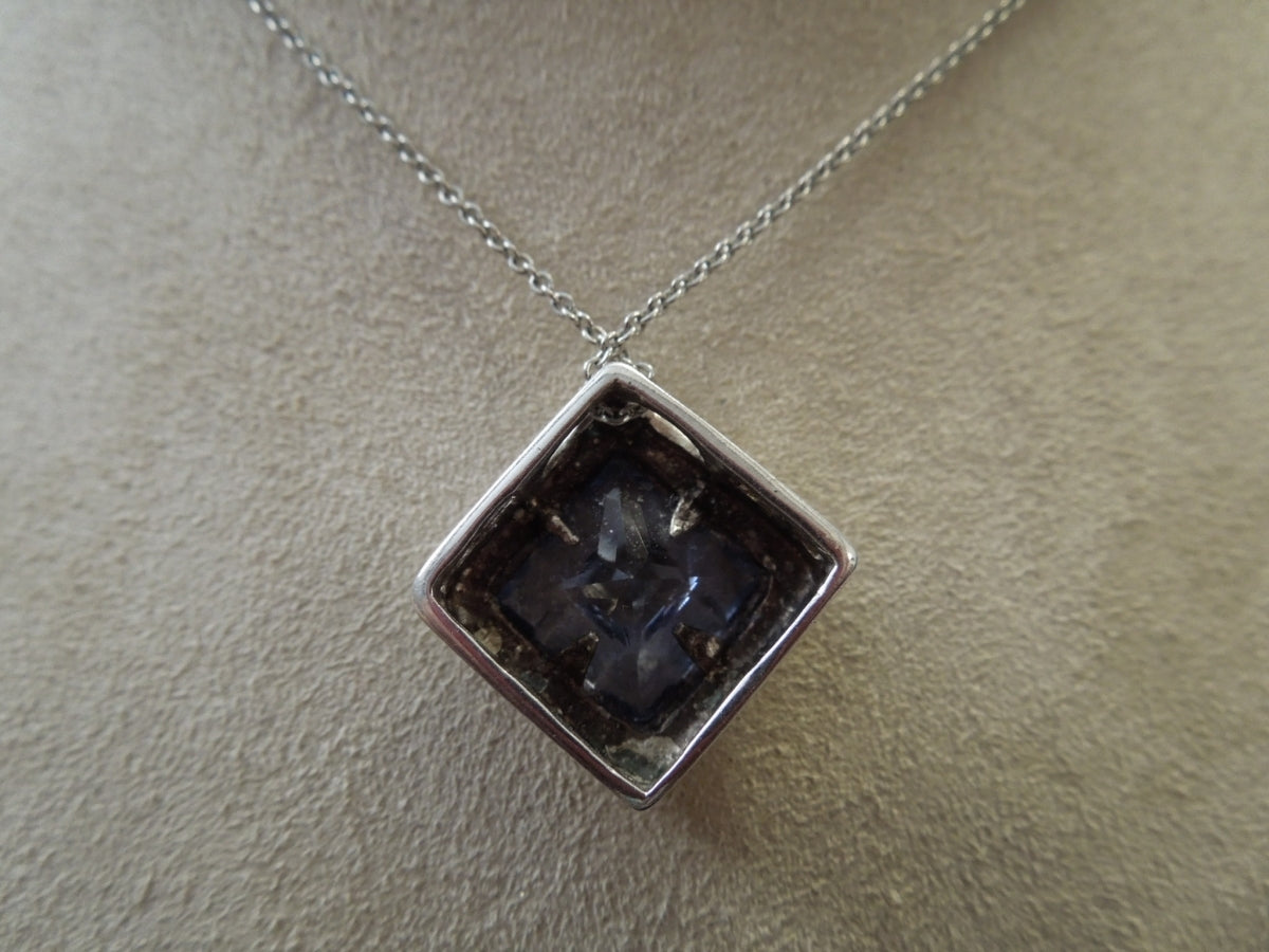 For Sale: (1) g982 Ladies Pretty Squared Purple Stone Pendant in Sterling Silver
