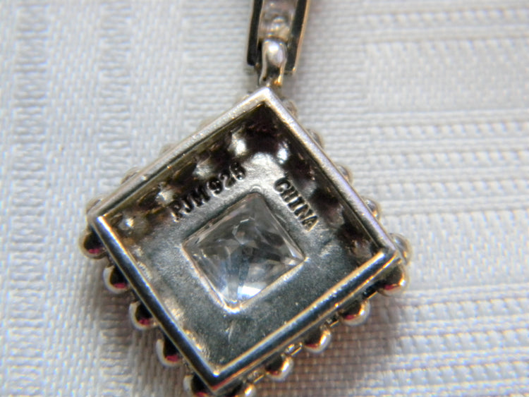 h516 Stunning Vintage Sterling Silver Diamond Shape Pendant with Rolo Chain