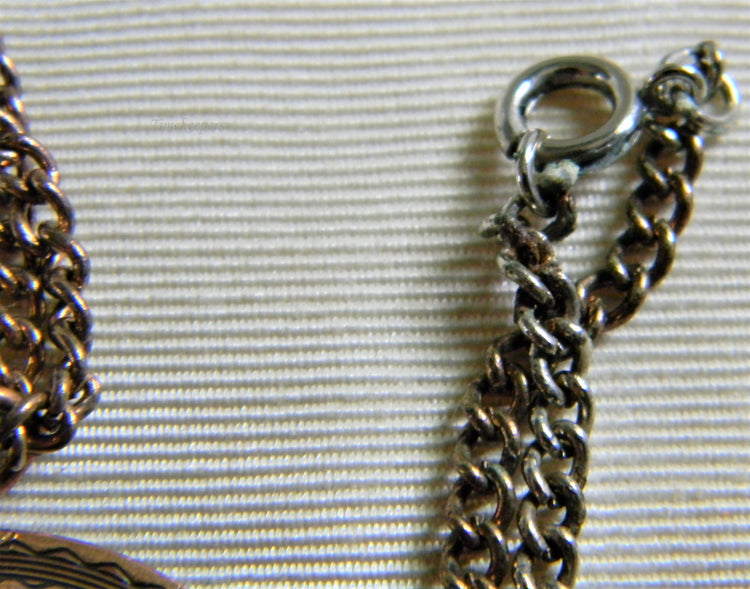 h766 Nice Vintage Copper Curb Link Necklace with Embossed Filigree Pendant