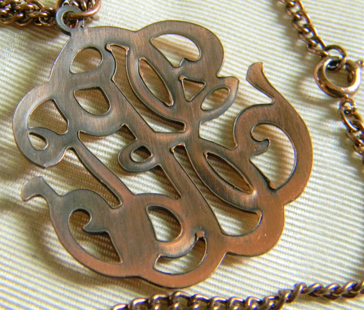 For Sale: (1) Nice Vintage Copper Curb Link Necklace with Filigree Pendant
