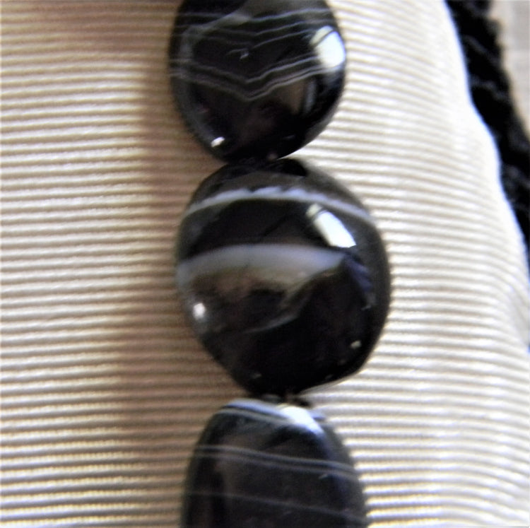 This necklace is made of beautiful polished flat black agate beads of varying sizes. This does have a magnetic clasp.