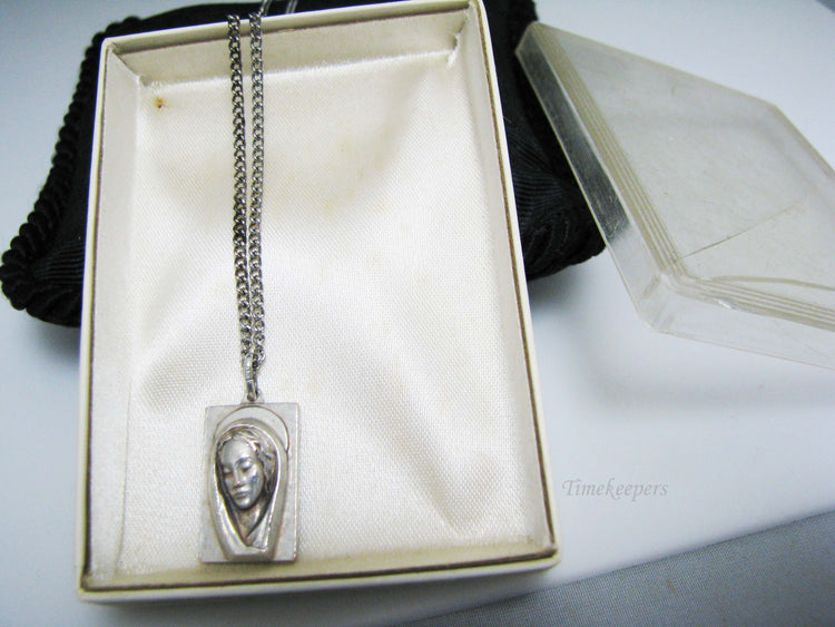 For Sale: (1) Silver tone Madonna and Jesus Pendant in Original Box