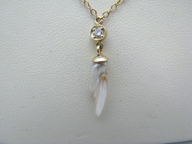 j179 Unique Vintage 14k Yellow Gold Nacre Pearl and Diamond Pendant