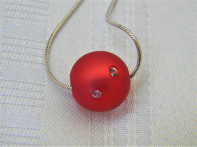 j340 Beautiful Red Resin Ball with Embedded Stones on 18" Snake Chain