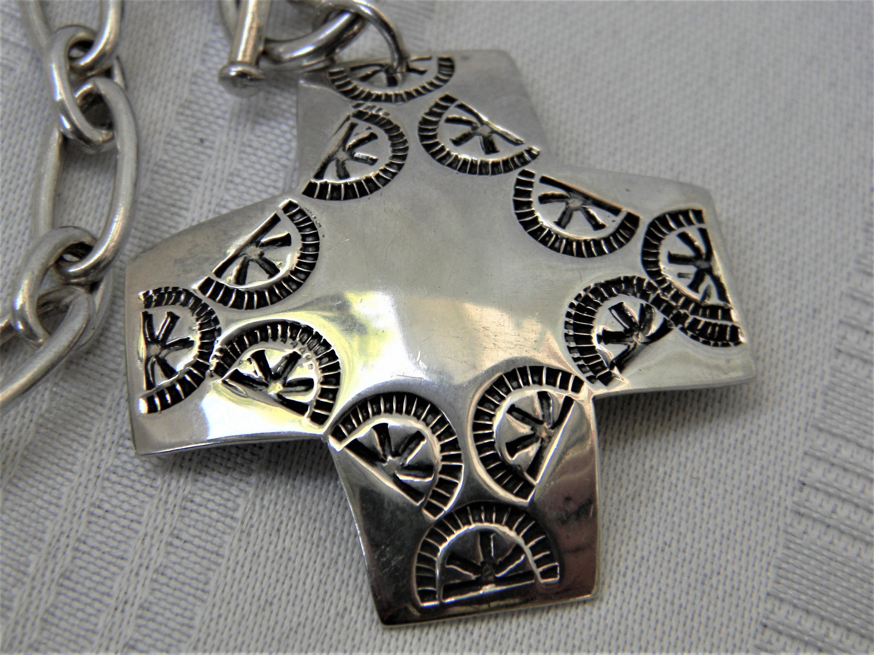 For Sale: Beautiful Unique Stamped Cross with Heavy Chain Toggle