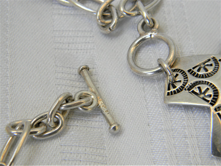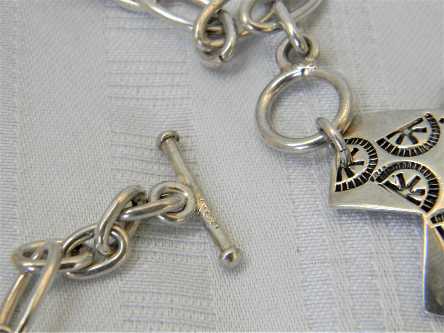 j341 Beautiful Unique Stamped Cross with Heavy Chain Toggle Clasp