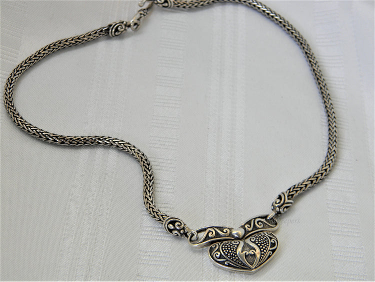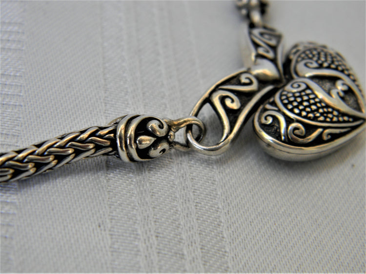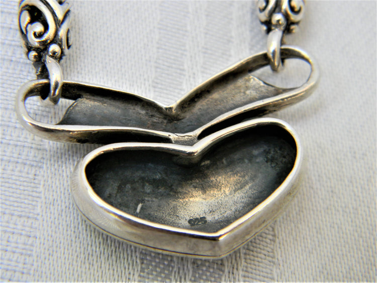 Stunning Vintage Sterling Silver Heavy Heart Pendant PLEASE READ ENTIRE DESCRIPTION BEFORE PURCHASING Pre-owned vintage item. Good condition. Please see pictures for details. Sold as is, as seen on pictures, no returns. Pendant and chain are both marked 925.