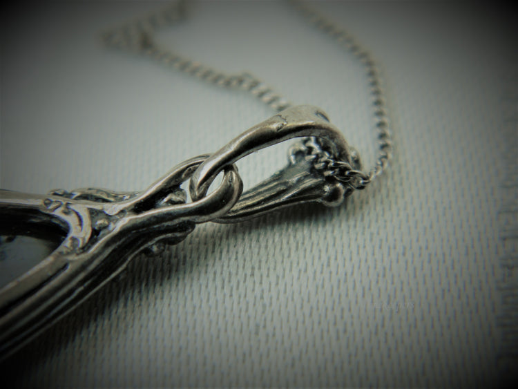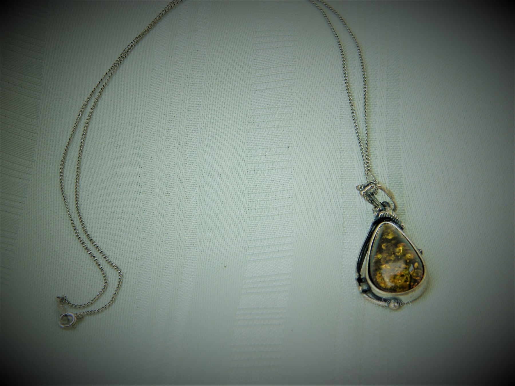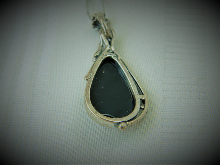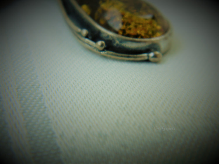 j405 Beautiful Vintage Sterling Pendant with Gold Glitter Resin on 14k WG Chain