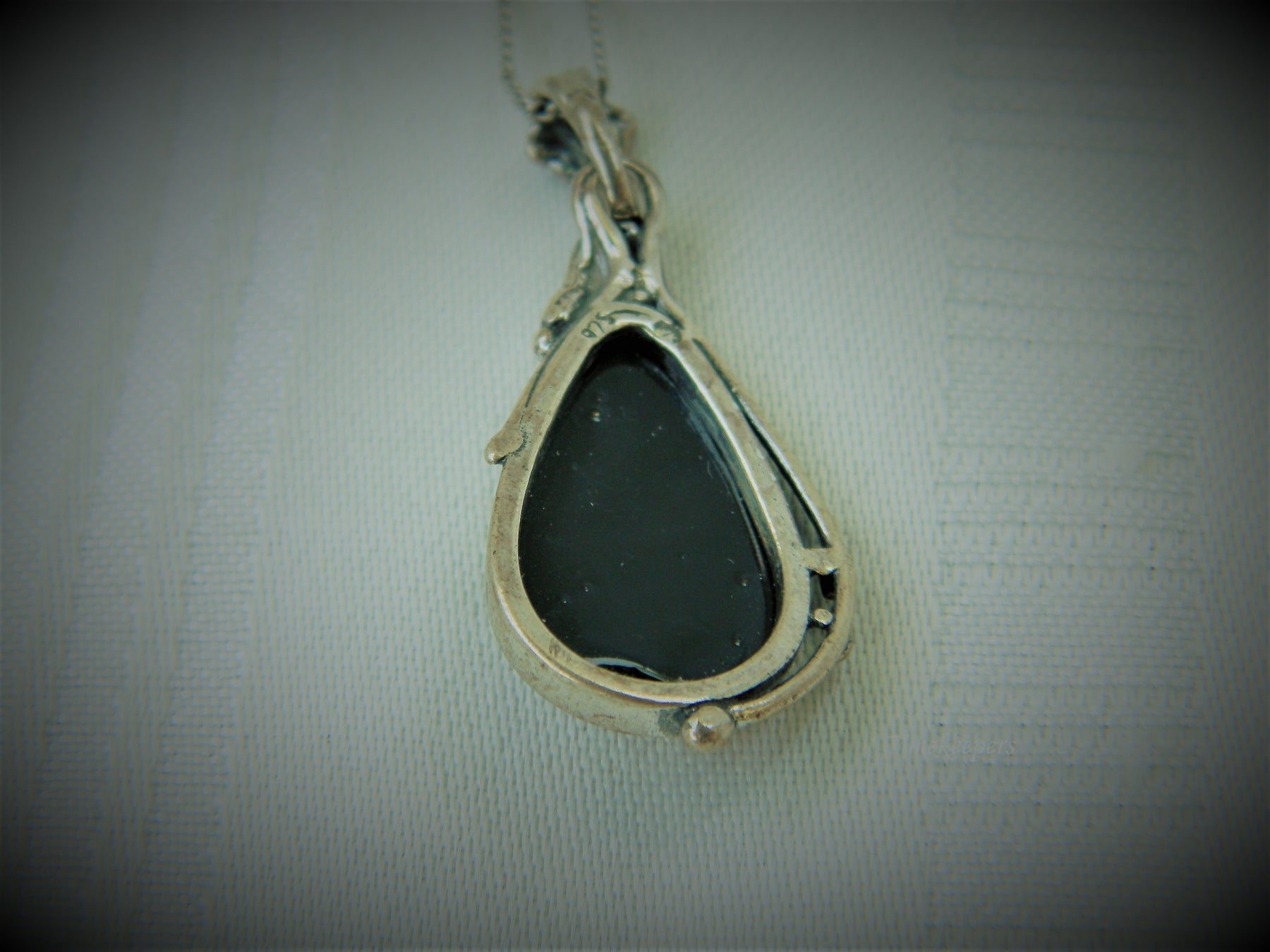 beautiful pendant is in sterling and so marked with a resin gold glitter