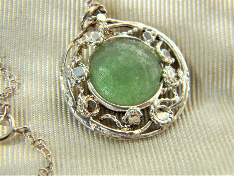 j409 Pretty Retro Sterling Silver Pendant with Green Glass Stone on Chain