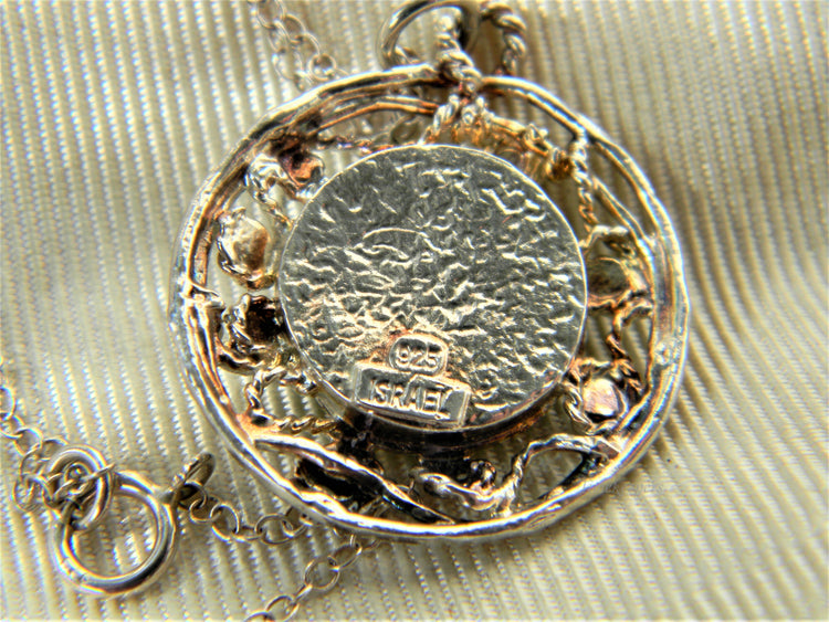 For Sale: (1) Pretty Retro Sterling Silver Pendant with Green Glass