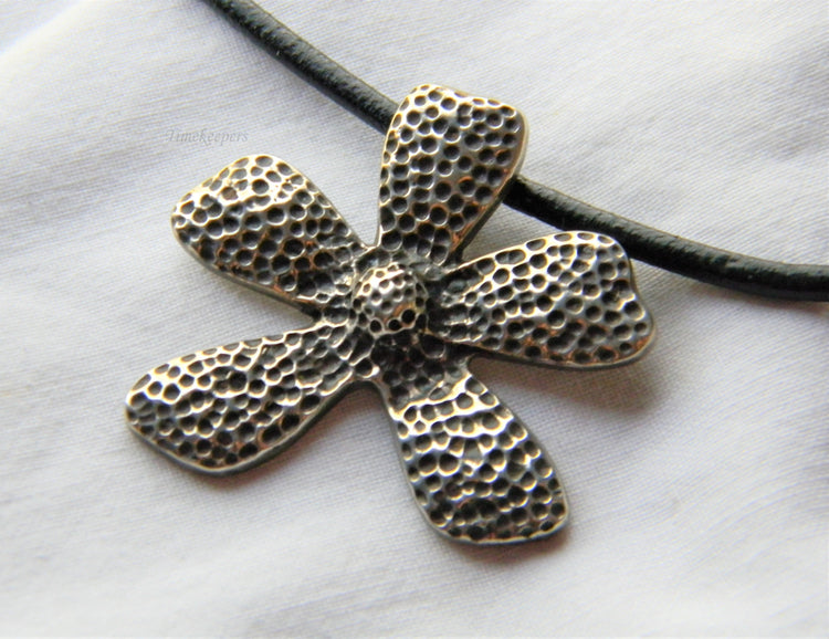 For Sale: (1) Unique Sterling Silver Flower Pendant on Black Cord from Thailand
