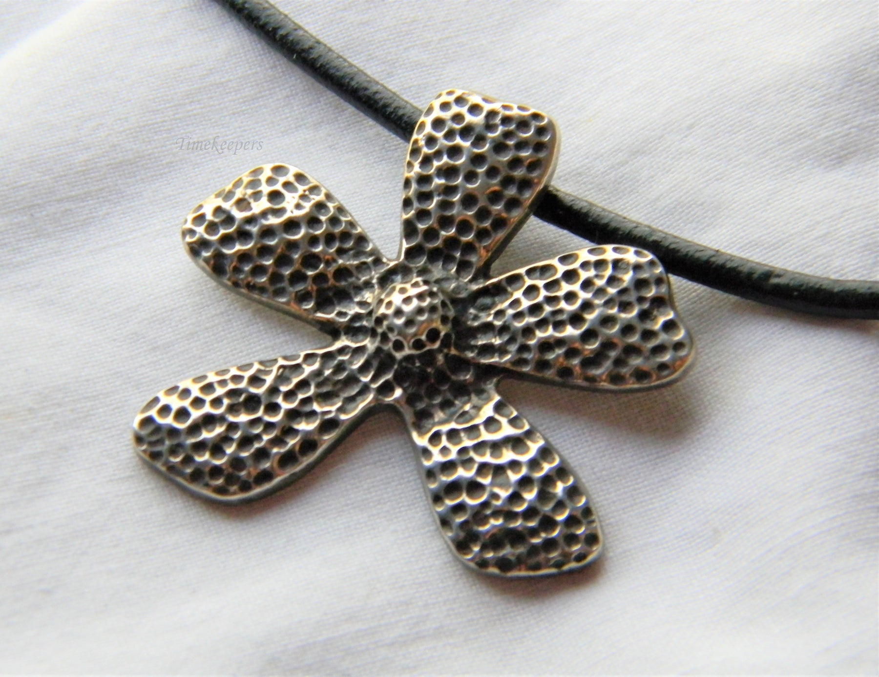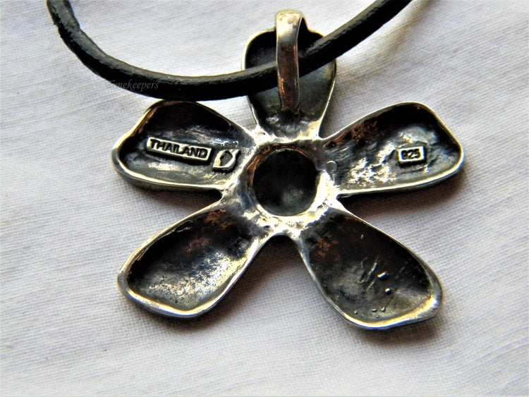 j513 Unique Sterling Silver Flower Pendant on Black Cord from Thailand