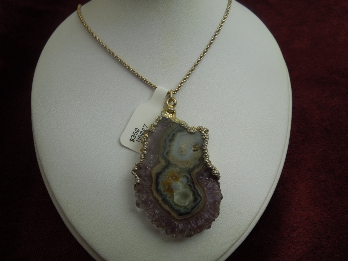 For Sale(1): q057 Gorgeous Gold Plated Amethyst Pendant with 30" Rope Chain