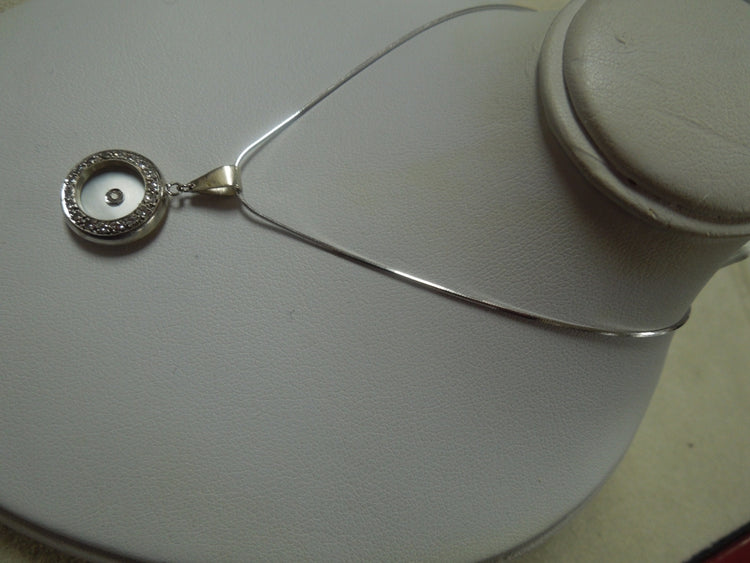 Beautiful Dazzling 14k White Gold Mother of Pearl Pendant/Necklace