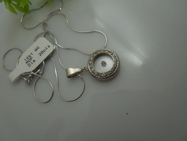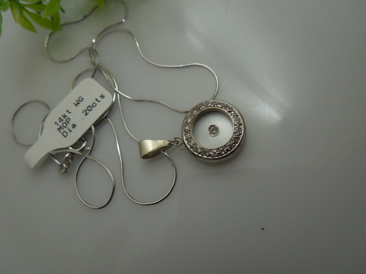 For Sale(1): q083 Dazzling 14k White Gold Mother of Pearl Pendant/Necklace