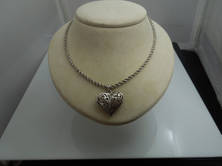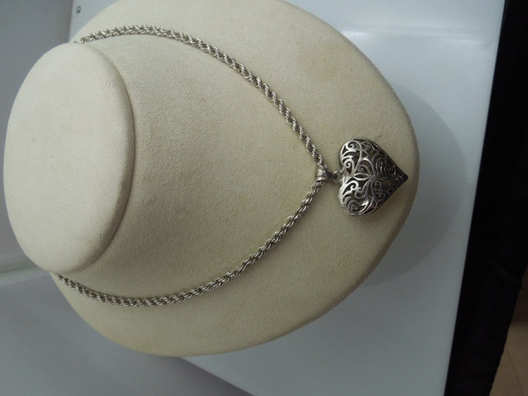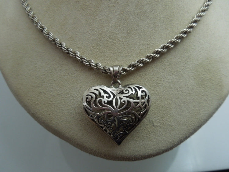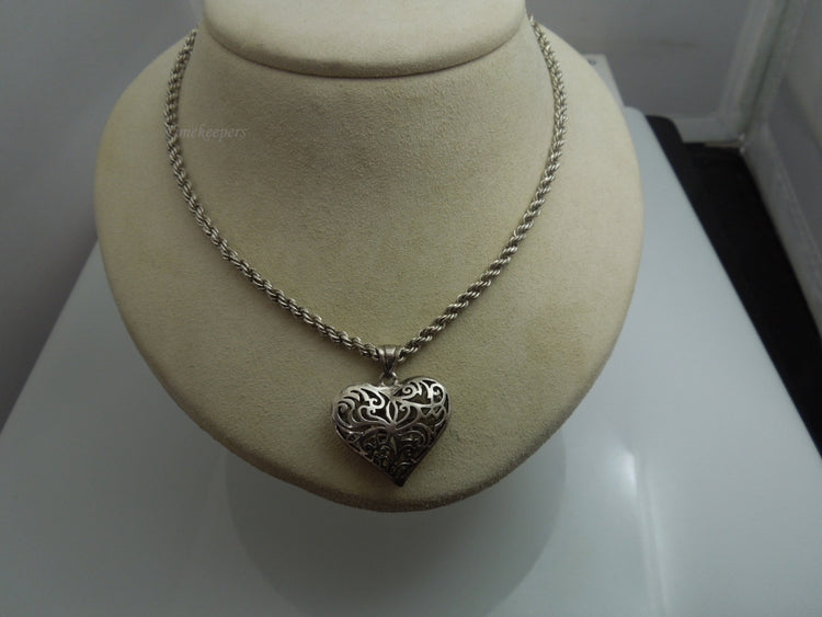 For Sale: (1) q102 Sterling Silver Rope Chain with Heart Pendant Size-26"