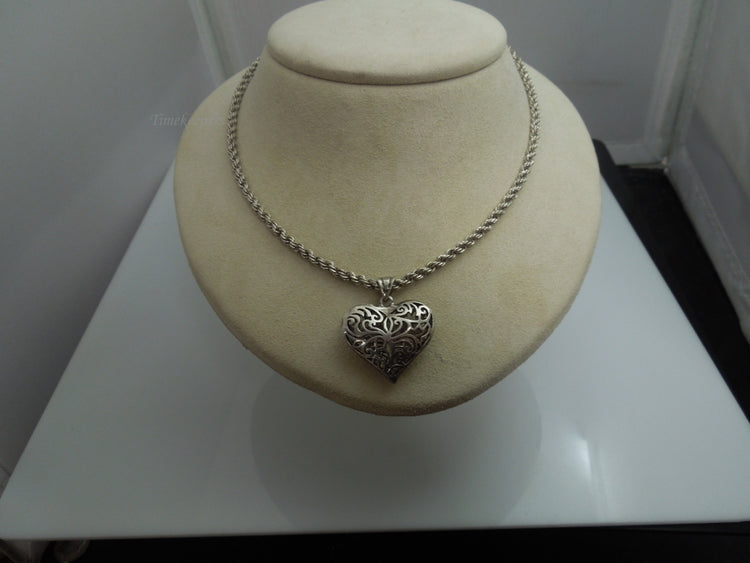 Pretty Sterling Silver etched puffed heart with an 26" Rope Chain. Perfect for an Anniversary, Birthday, Mother's Day, Christmas, or Valentine's Day gift.