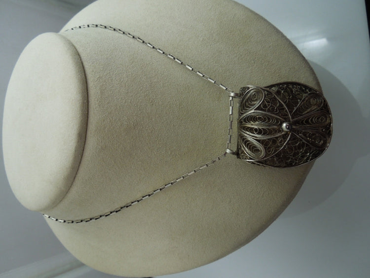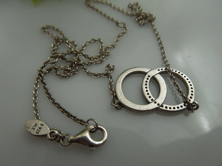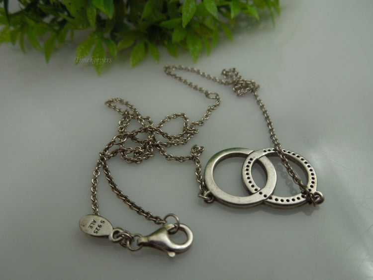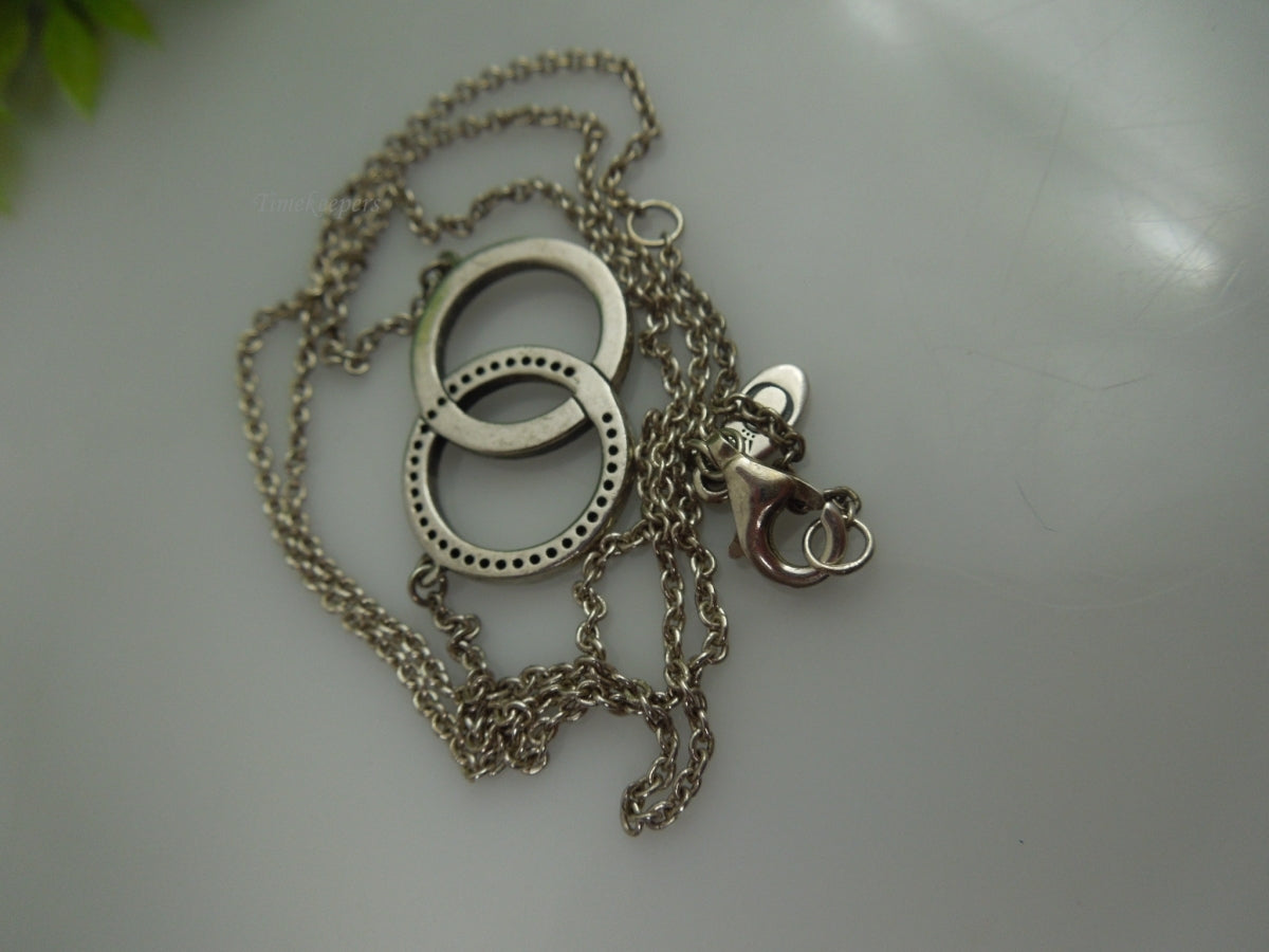 For Sale: (1) q172 Sterling Silver Dual O Pendant Pandora Necklace 18"