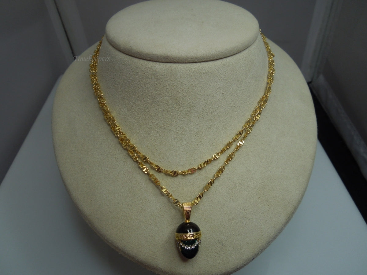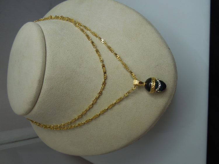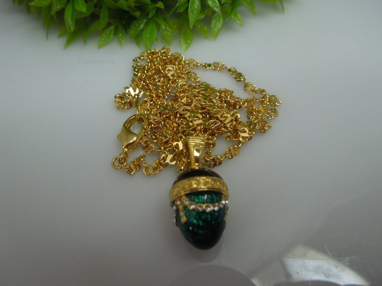For Sale (1) : q232 Mother's Day Special Russian Style Easter Egg Green Pendant and Gold Plated Chain 25"