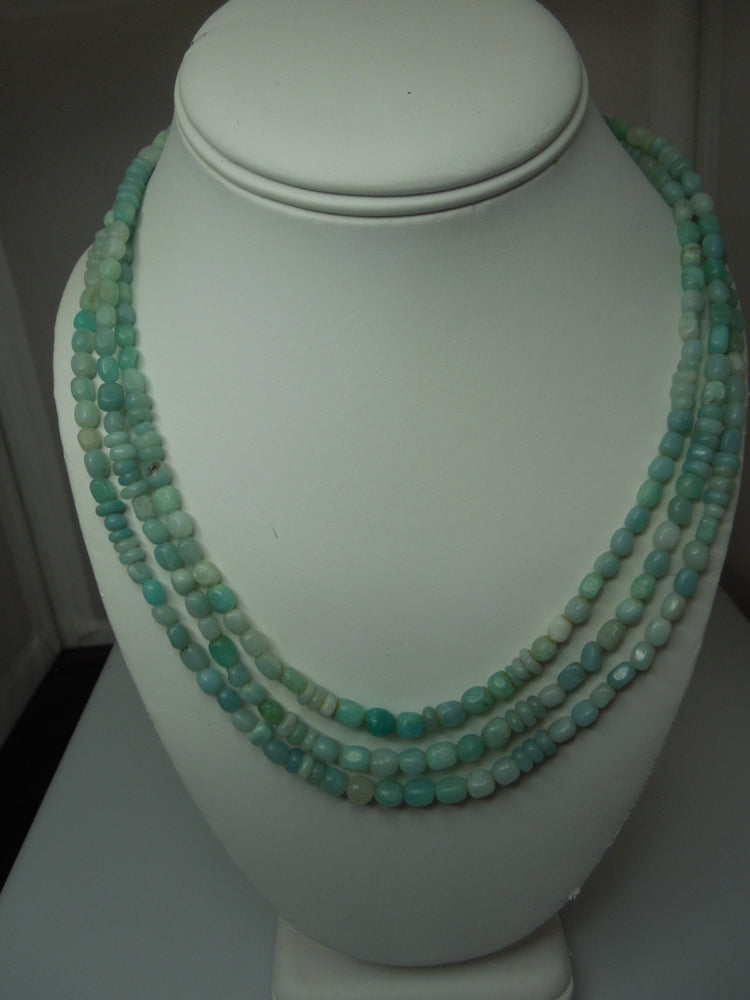 For Sale: (1) q257 Vintage 3-4MM Natural Larimar Faceted Beads Beaded Necklace 3 Strand
