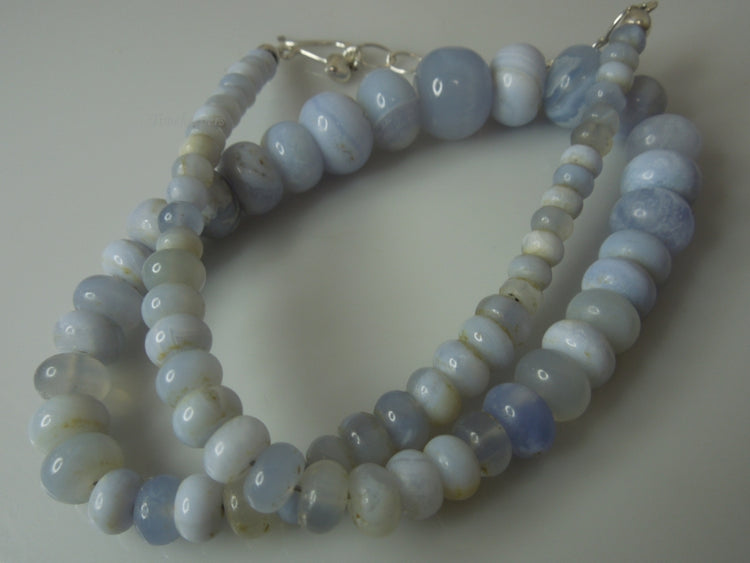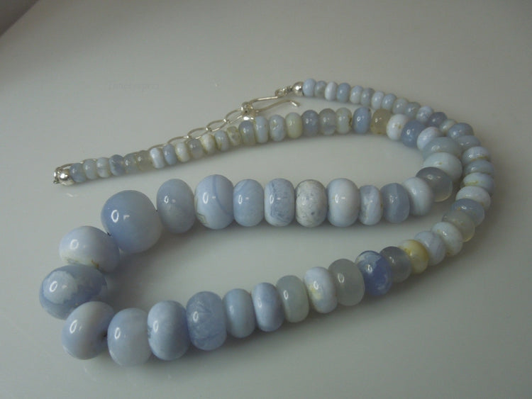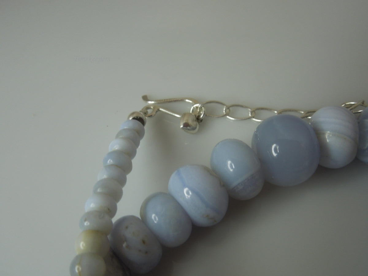 For Sale: (1) q339 Pretty Blue Lace Agate Beads Necklace For Women with Sterling Silver Clasp