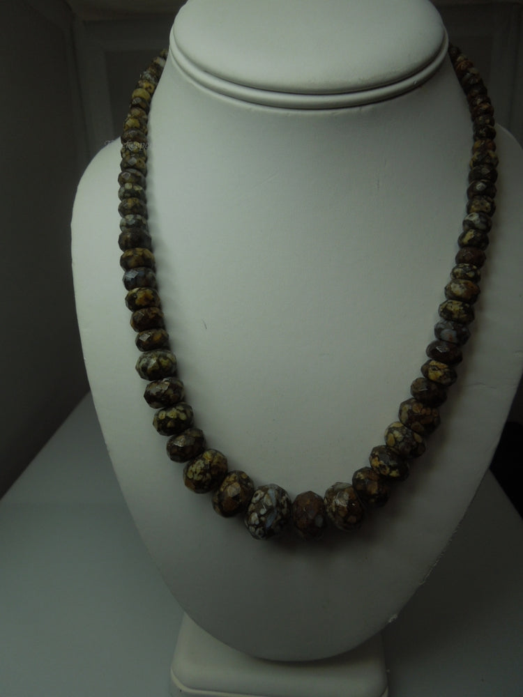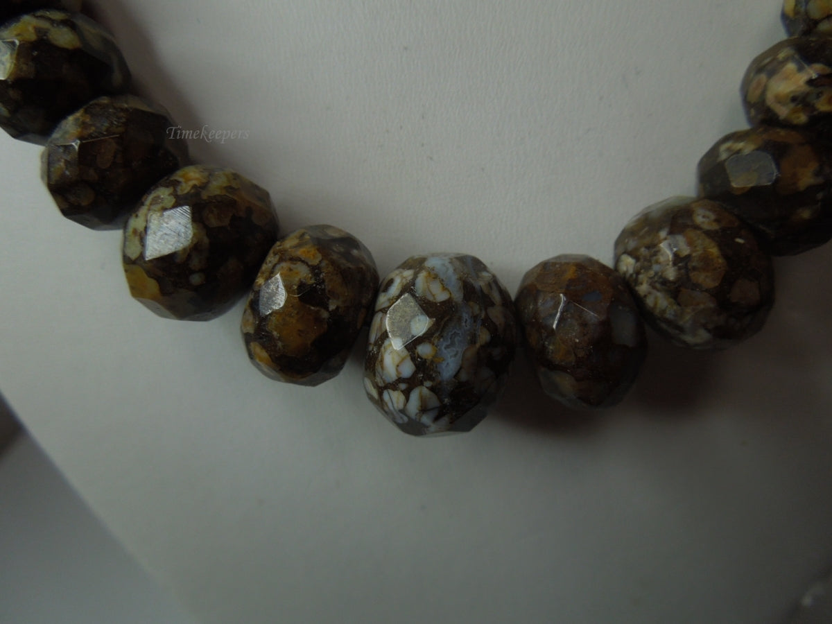 For Sale: (1) q356 Coral Fossil Jasper Faceted Bicone Barrel Drum Grade AAA Natural Beads Necklace with Silver Clasp