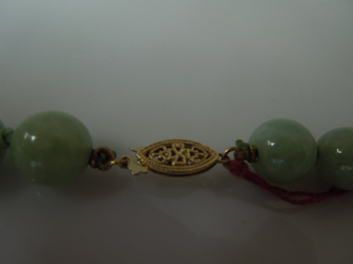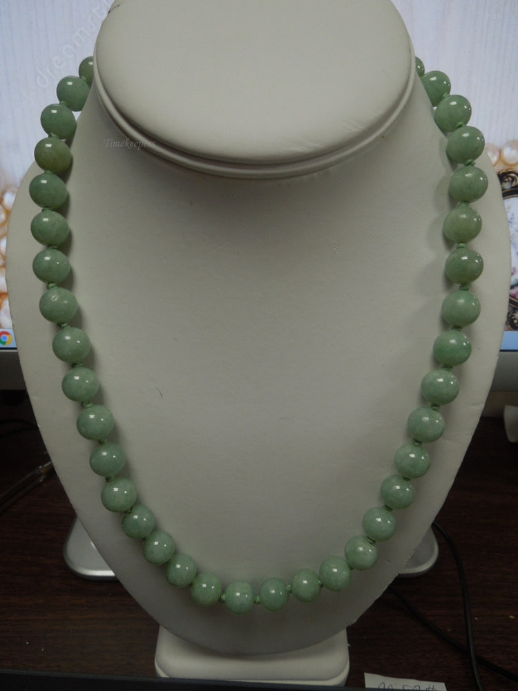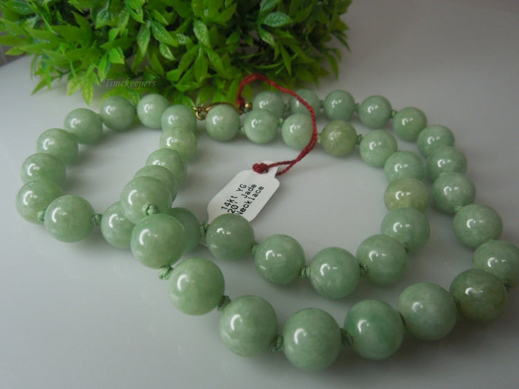 For Sale: (1) q424 Single Strand 8mm Natural Round Jade Necklace 20 inch Long with 14kt Yellow Gold Clasp