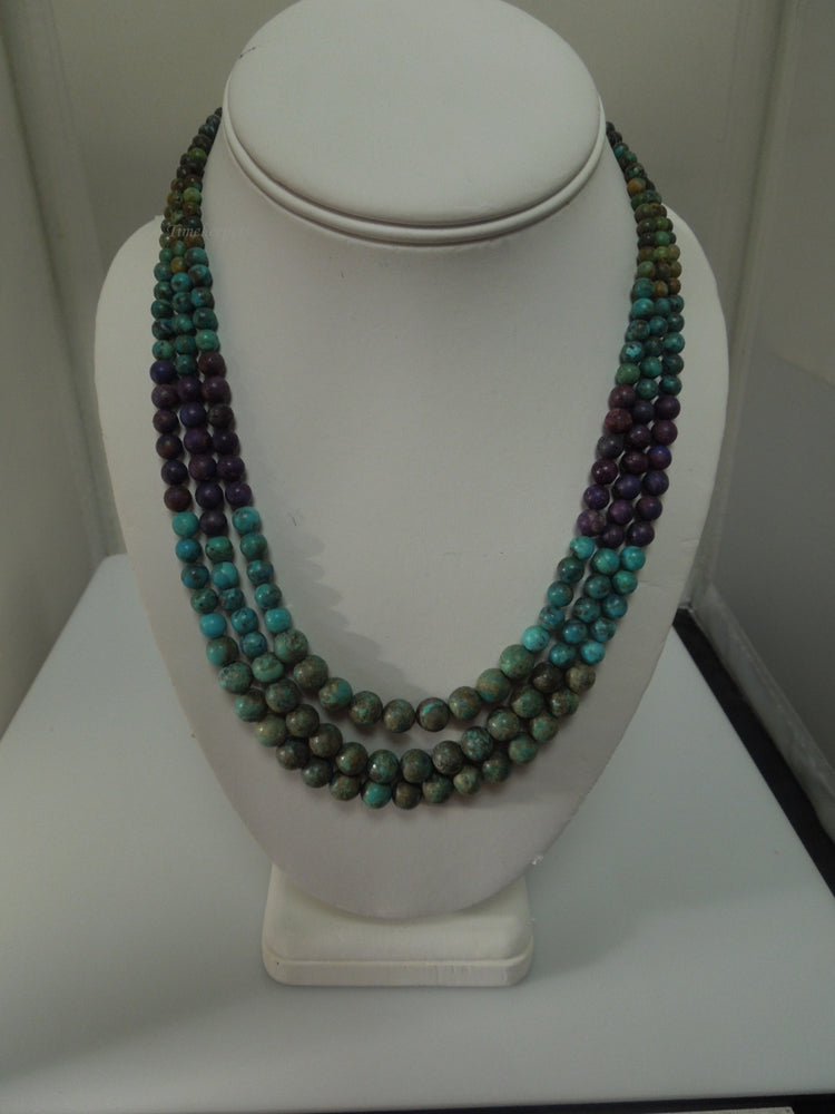 For Sale: (1) q446 Beautiful 3 Strands Multicolor beads with Sterling Silver Clasp Necklace 18"