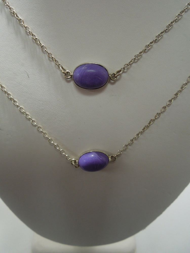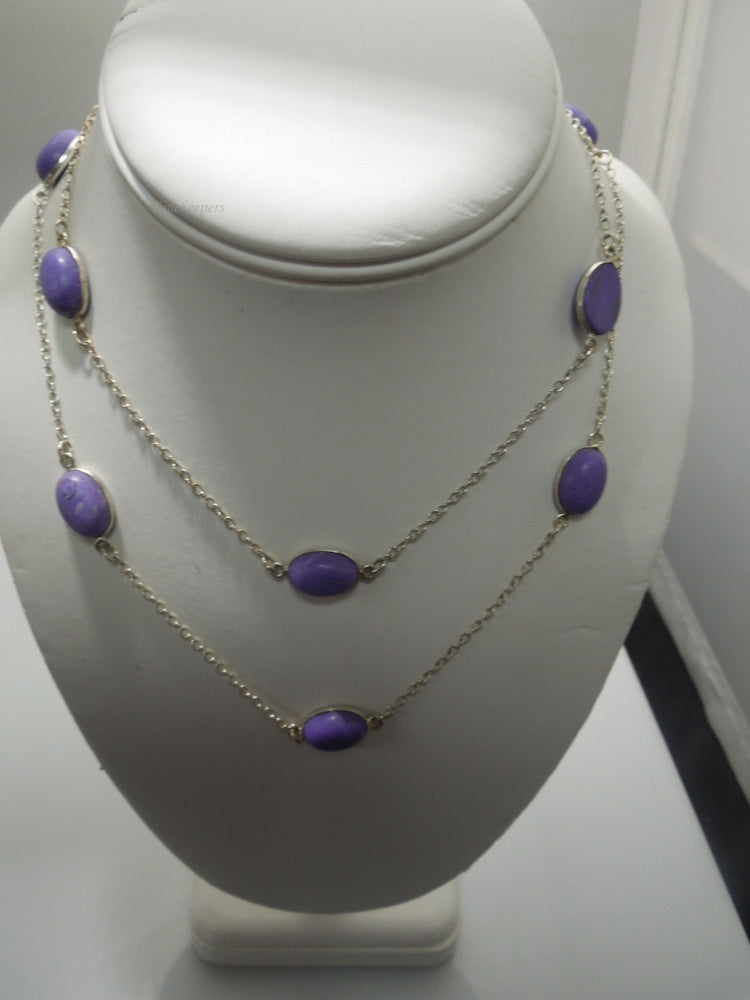 For Sale: (1) q449 Beautiful Purple Stone and Sterling Silver Link Chain Long Necklace 33"