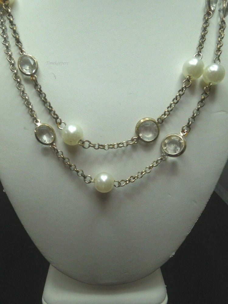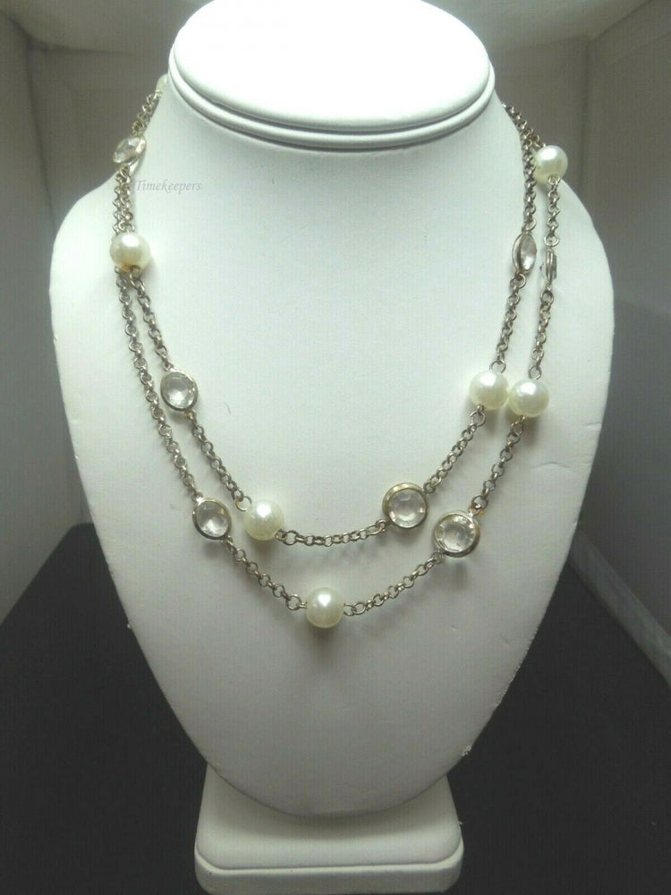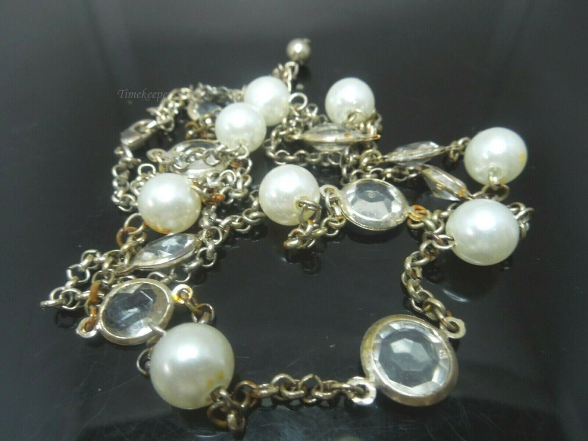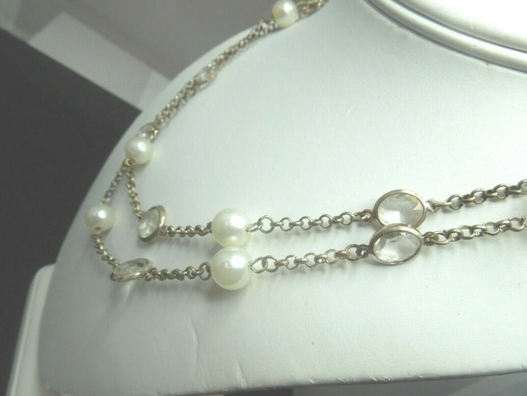 For Sale: (1) q485 Beautiful Silver Tone Pearl and Clear Stone Link Chain Necklace