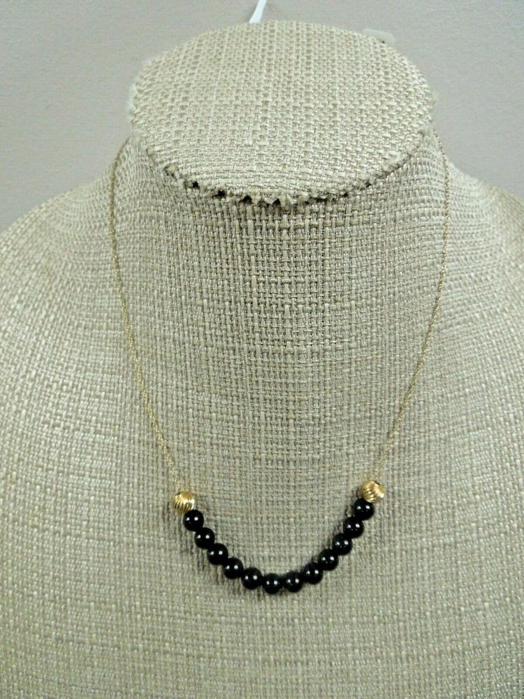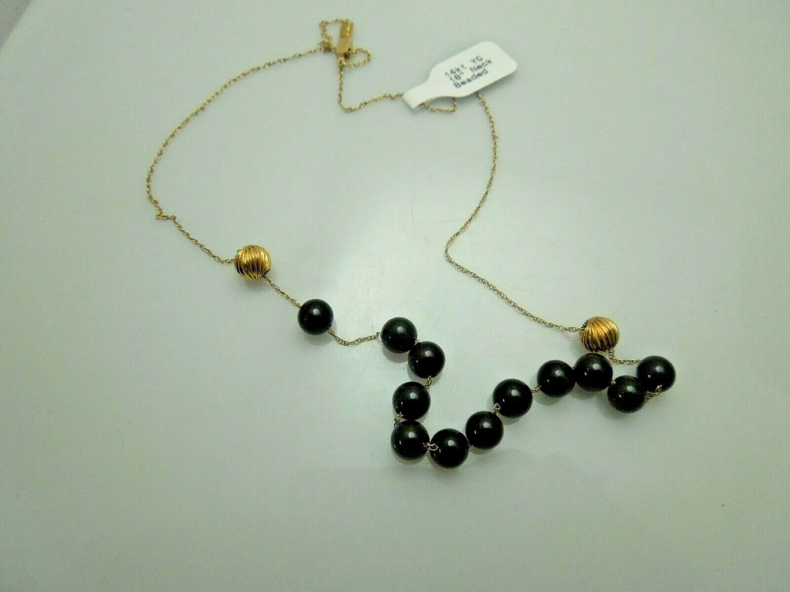 r148 14kt Yellow Gold Necklace 18" with Gold Balls and Black Onyx Balls So Beautiful
