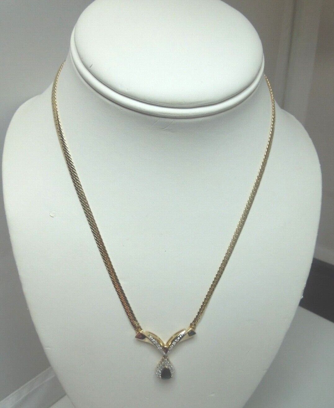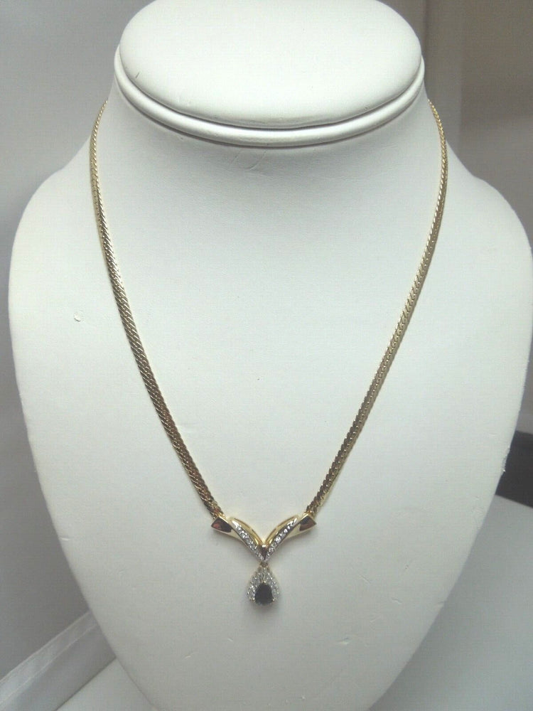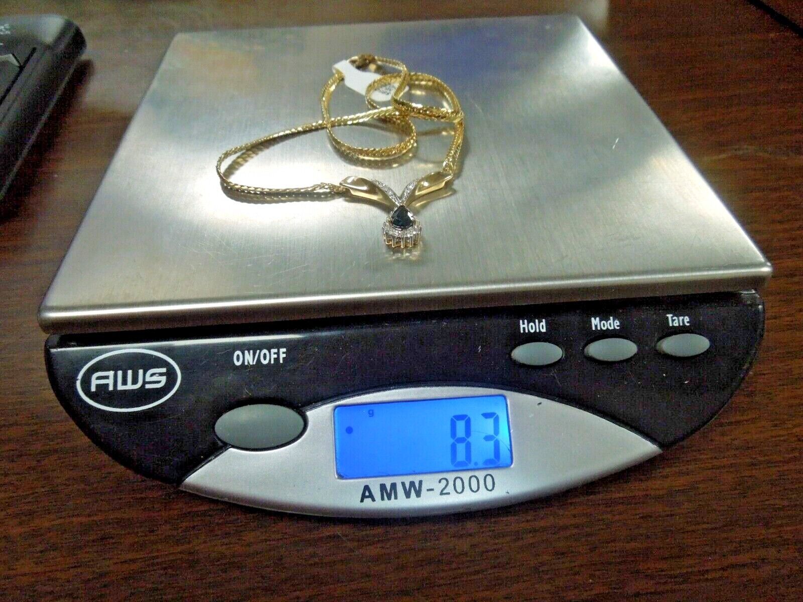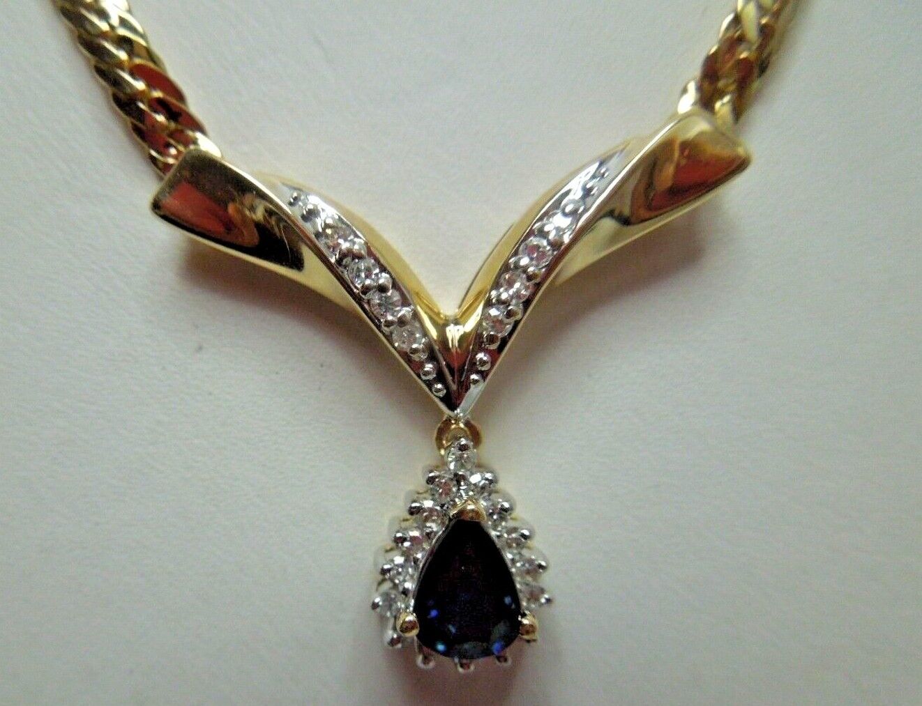 r168 14kt Yellow Gold beautiful Diamond and Sapphire Pendant Necklace 17" Made In Italy Signed 8.3g