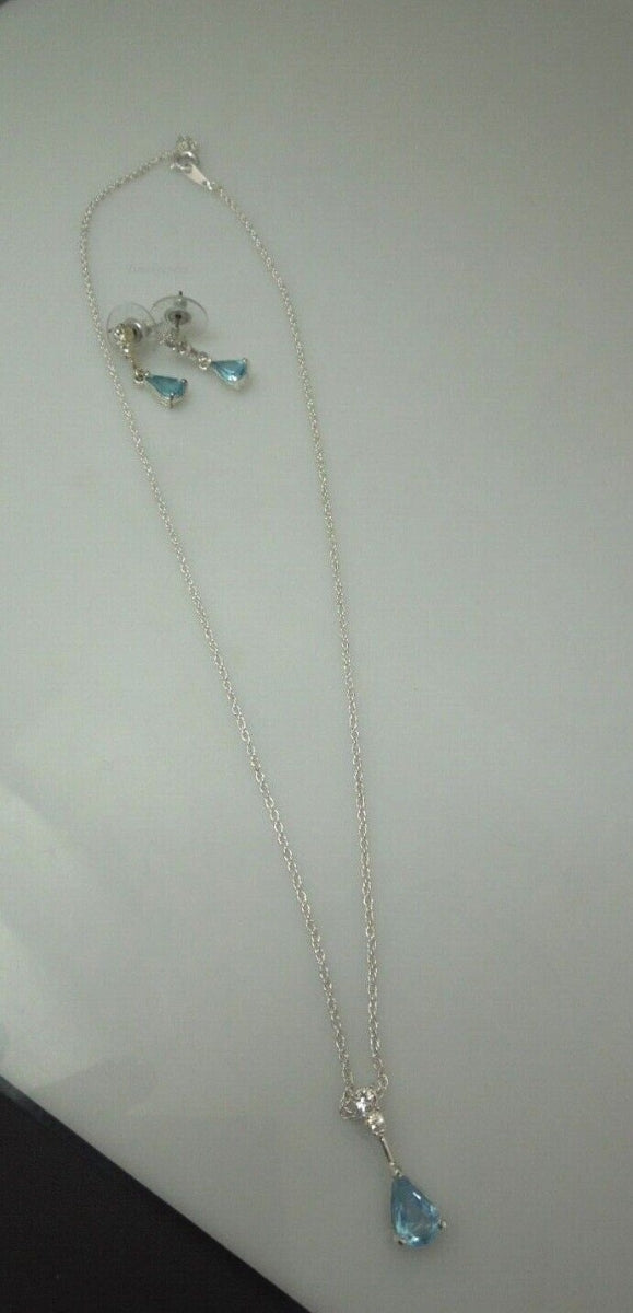 For Sale(1) : r360 Silver-tone Blue Topaz Pendant Wave Chain and matching Earrings Set