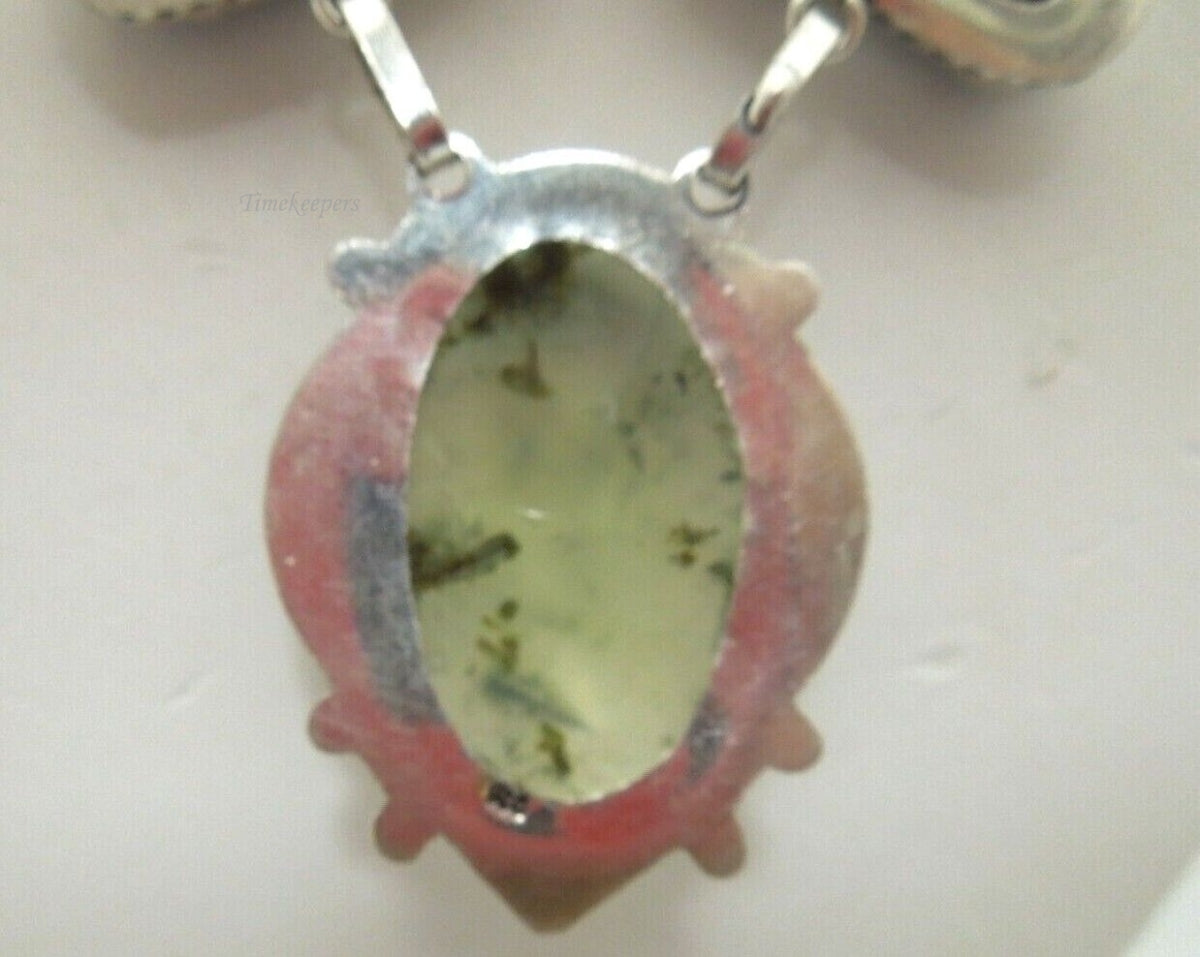 r622 Stunning Beautiful Necklace with prehnite stone,green glass stone and Baroque Pearls framed in Sterling Silver Pendant 20"